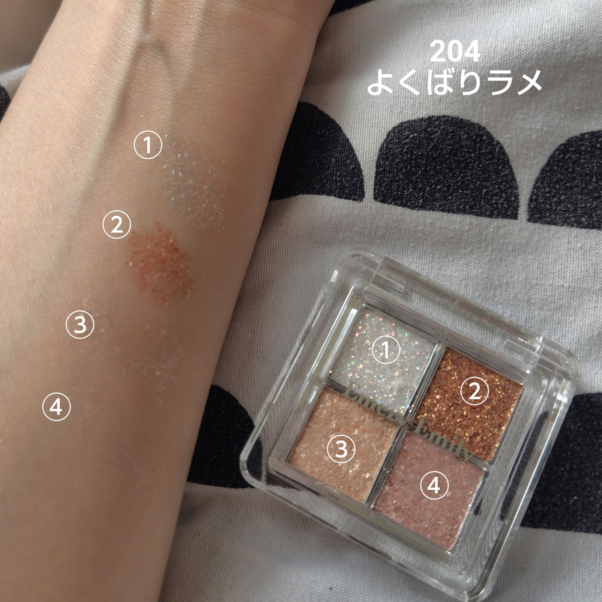 コンビニで買えるとは思えないほどクオリティーの高い商品だと思っていて、粉質もしっとり、カラーもオシャレでラメもキレイでラメ落ちも少ないと思います。 今回の限定色は誰が使ってもオシャレで簡単に使いこなせるカラーになってるみたいで、 05はシアーなカラーで腫れぼったくならないピーチカラーは大人も使いやすい 06は一見、カーキって使うの難しいと牽制しがちなカラーもシアーな色とラメがザクザクではっきりカーキではなくニュアンスカーキで使いやすい がっつりカラーを乗せたい人より淡いカラーのアイメイクが好きな方には是非使ってほしいアイシャドウです!