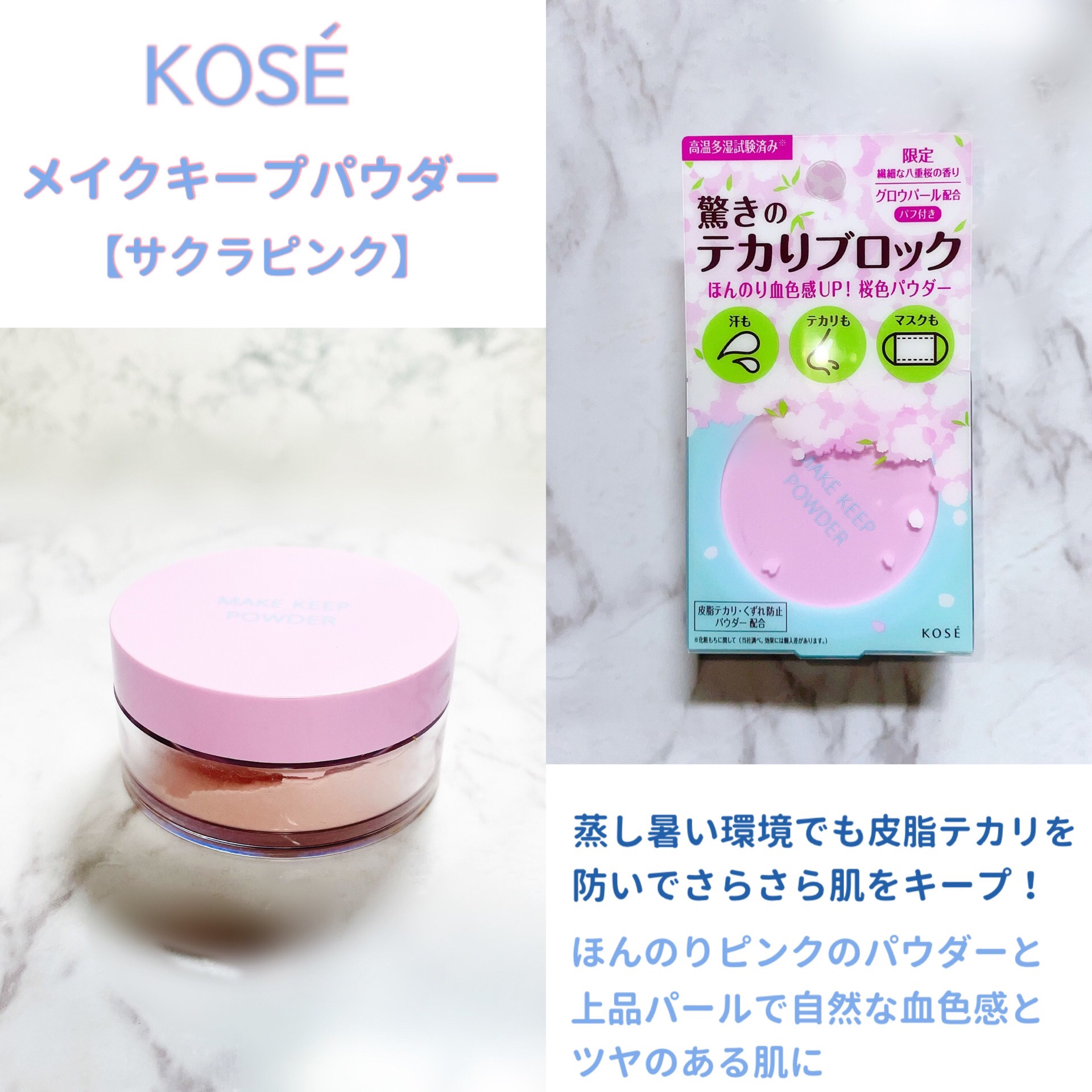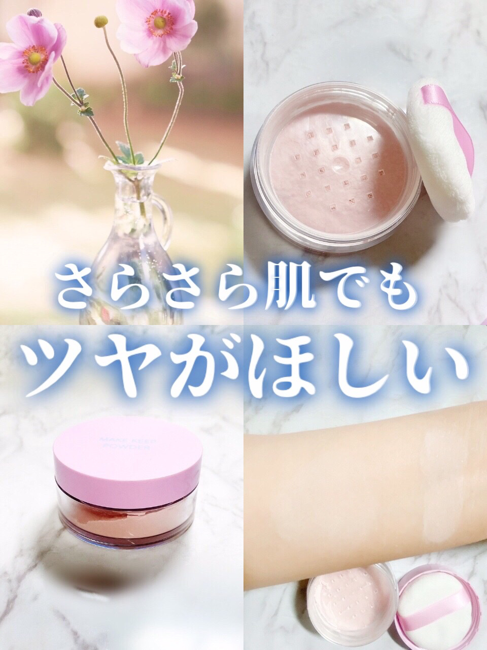 蒸し暑い環境でも、皮脂テカリを防いでサラサラ肌をキープしてくれるそうです。美しい仕上がりが長時間持続するメイク キープ パウダーです。 粒子の細かい片栗粉系のパウダーで肌なじみが良く、サラサラの仕上がりです。 このパウダーとメークキープミストでメイク崩れが軽減されるので、暑い季節には欠かせなくなる気がします。