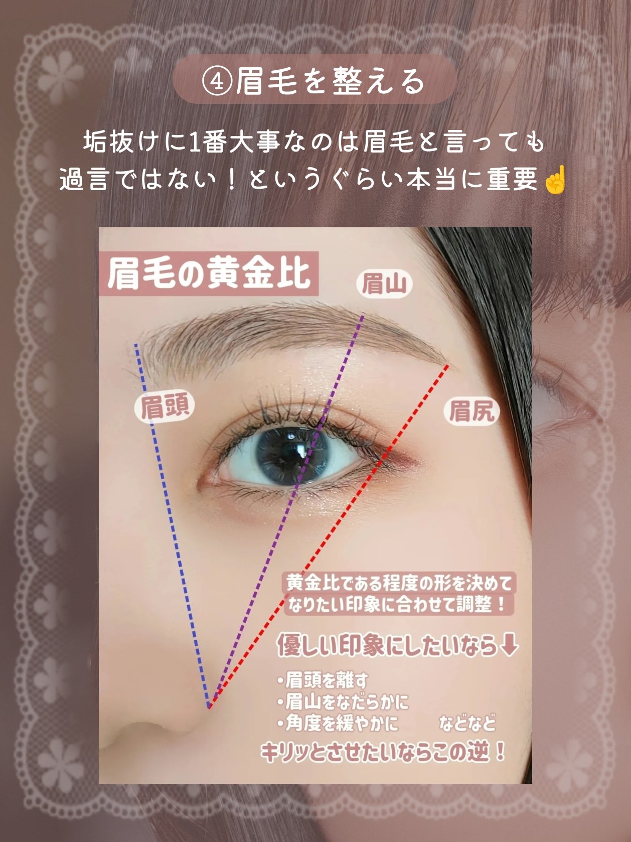 眉毛は顔の印象が1番変わると言っても過言では無いほど重要なパーツ!! 存在感のない「忘れ眉」?にする! 自分の顔の形や黄金比に合わせて似合う形を探すのがおすすめ︎︎👍 眉頭>>>>眉尻に向かって濃くなるようにグラデーションをつくると自然な仕上がりに♪