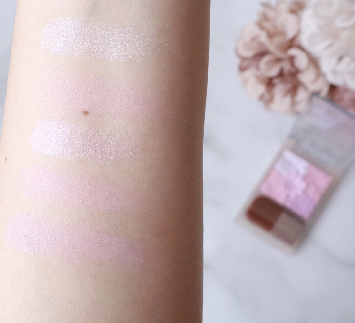 全体的にパール感強めなサンクで、スウォッチで見る限りでは光を集めると確かに白っぽく見えますが全体が白飛びしてしまったりはしません。 目元に使ってもスウォッチのような光り方は全く感じず、バブリーな白!パール強めで光る!みたいな発色もしないためデイリー使いできます。 全体的に黄み感ゼロの青みに振り切ったアイシャドウパレット。