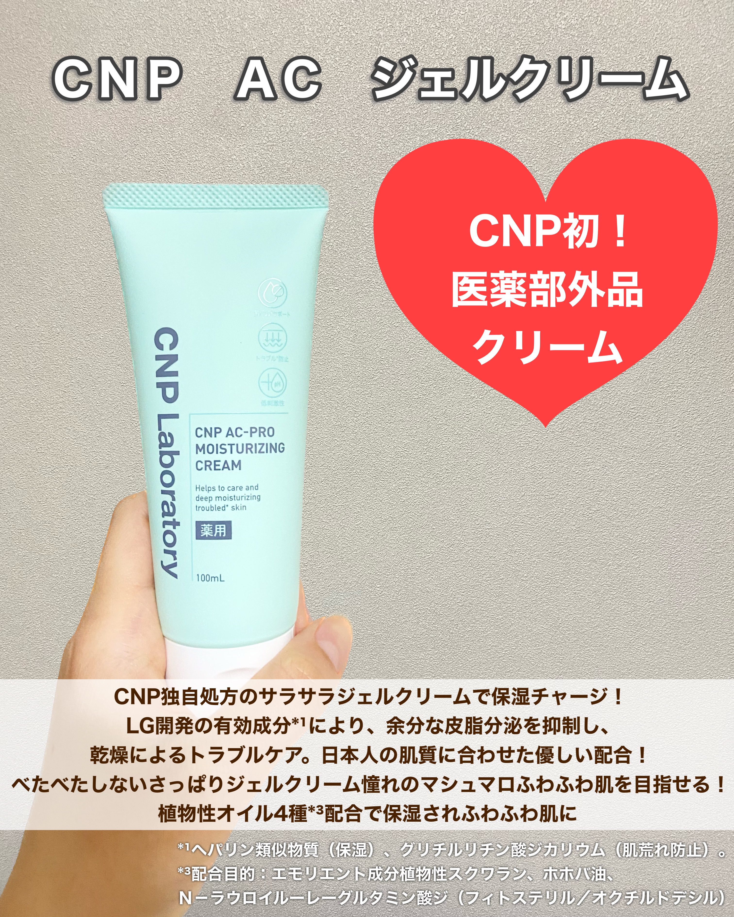 CNPLaboratoryACジェルクリームハンズで購入しました!日本製のCNPLaboratoryで、医薬部外品の商品です!敏感肌&ニキビ肌なので、気になって買ってみました!ジェルタイプのクリームですが、しっかりと保湿してくれながらも、スキ...