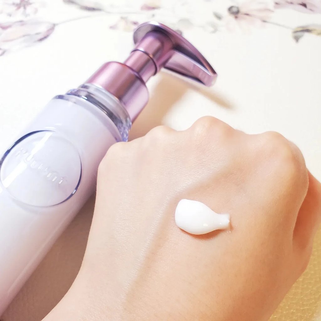 SPF50+・PA++++の日焼け止めで、 化粧下地としても使えるアイテム💡 ポンプ式になってるから出しやすい🙆♀️ 肌に伸ばすとしっとりとしたつけ心地! ベタベタしないから使いやすい👌