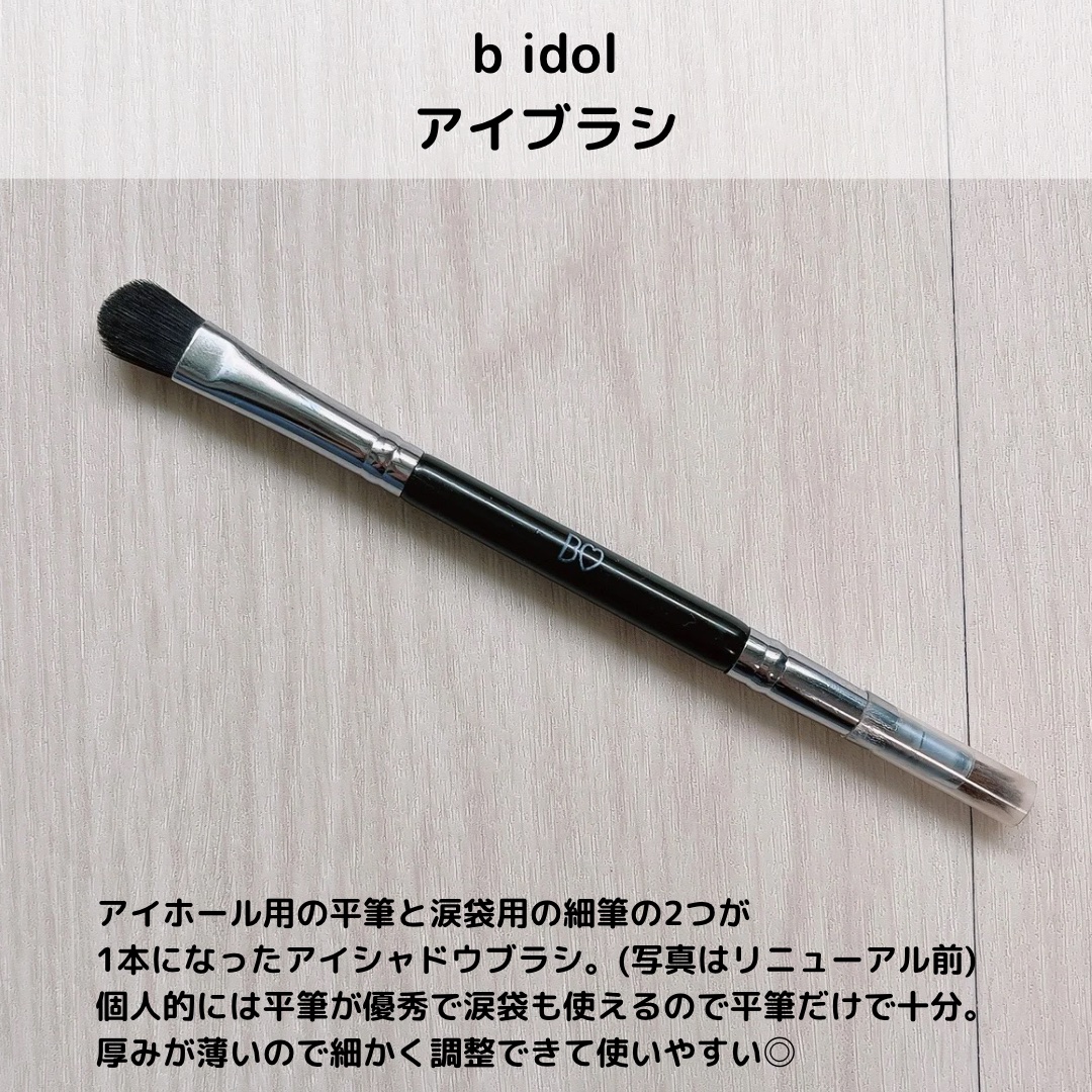 アイシャドウ使いに欲しい要素をつめこんだ、2種類のブラシが1本に。計算されたブラシの形や硬さは、「THE アイパレ」との相性も抜群。 大ブラシはまぶた全体に色をのせるのにピッタリ❤️ パウダーをたっぷり含んでドバッと付いちゃうブラシとは違い、良くも悪くも薄付きになる感じ😌 小ブラシは丸みがあって平筆と違って毛質が柔らかめ‼️ 私は上下目尻側の締め色をのせる時に使いたい😆