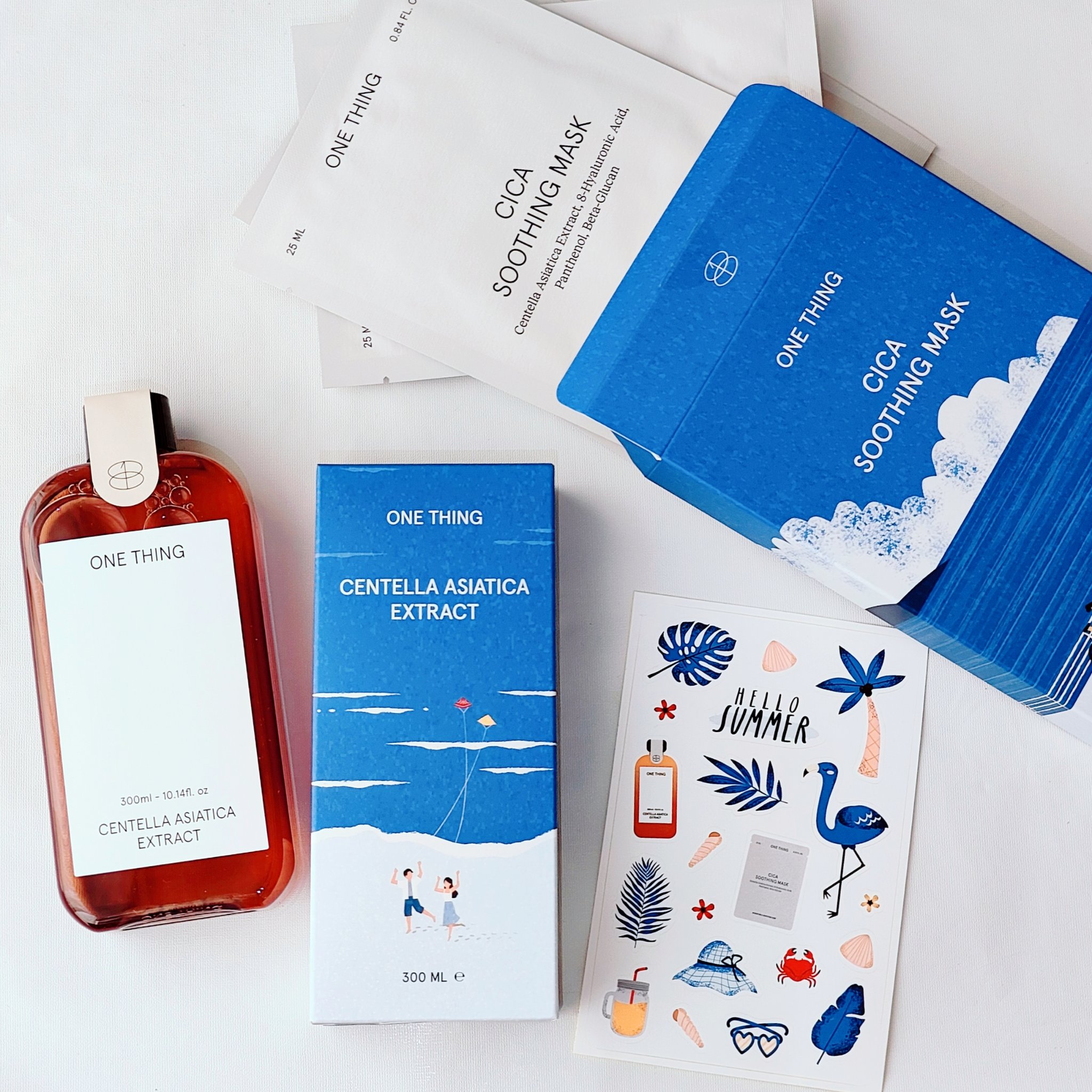 韓国スキンケアブランド「ONE THING」のBEST3商品 ☑︎ツボクサ95%化粧水 ☑︎ナイアシンアミドグルタチオンセラム ☑︎シカスージングマスクパックが入った、 私のおすすめは『ツボクサ95%化粧水』。炎症を抑えて肌を鎮静し、抗酸化作用で色素沈着を改善する効果も。 『シカスージングマスクパック』はシカアンプル一本分を丸ごと配合した贅沢なマスクパック。5分ほど貼っているだけでツヤっとした水光肌を叶えてくれるんです♡
