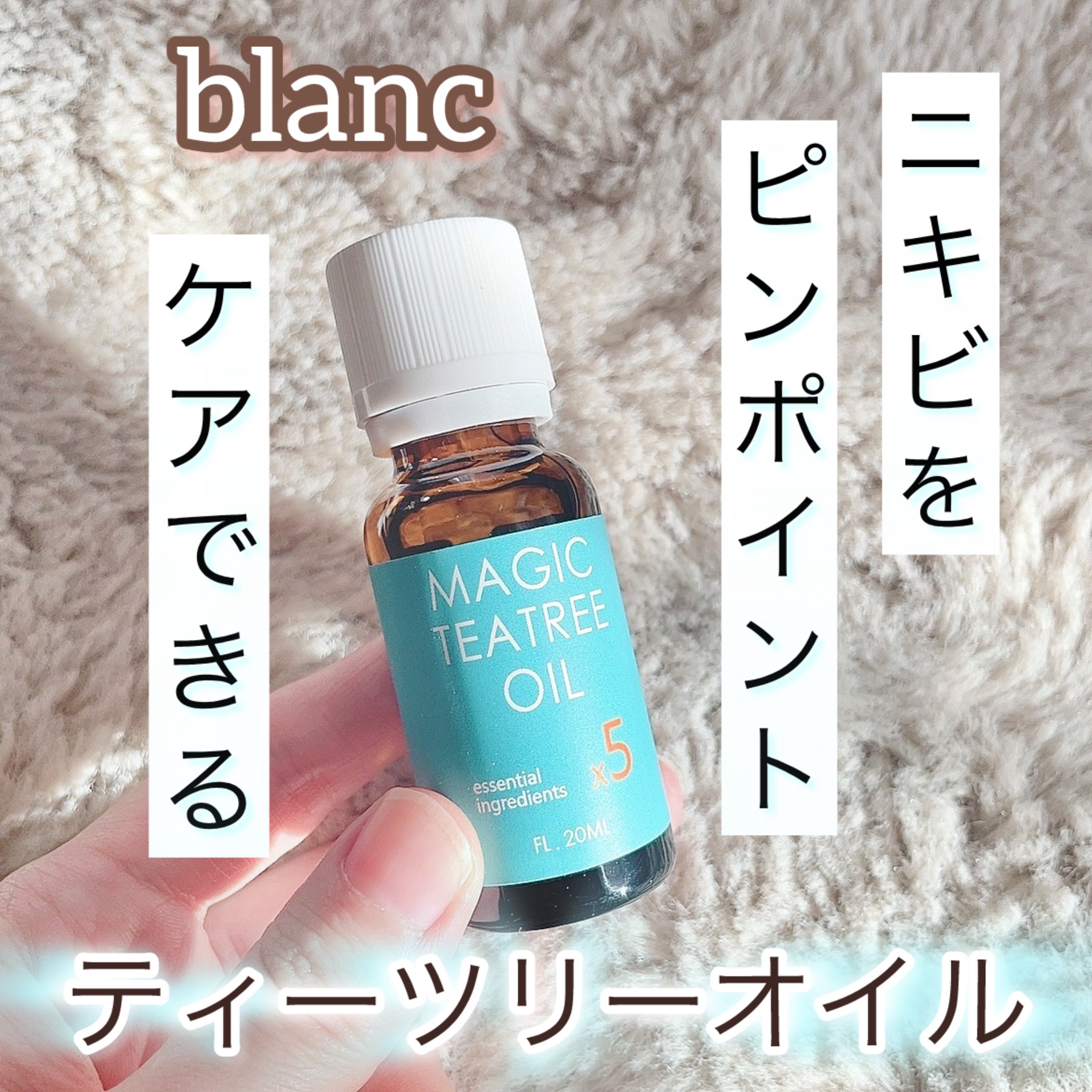 - マジックティーツリーオイルは、乾燥や皮脂による肌悩みをスポットケアし、整える商品です。ブラン代表の整肌成分である4‐テルピネオールで肌トラブルの原因の1つである皮脂を素早くケアします。 【このような方におススメ】 ✔乾燥による肌悩みが気になる方 ✔過度な皮脂と油分が気になる方 ✔べたつきのないスキンケアを探されている方 ✔肌荒れを防ぎたい方 ✔年齢性別肌タイプ関係なく使用できる商品を探されている方 【使用方法】 ①洗顔後、コットンに適量を取り、軽くふき取った後馴染ませます。 ②気になる部分の肌をきれいに洗顔後、トナー→クリームの順でお肌を整えます。 ③綿棒に1~2滴落とし、気になる部分に塗ります。 経過を見て朝晩のスキンケアの最後の段階に塗ることを繰り返します。