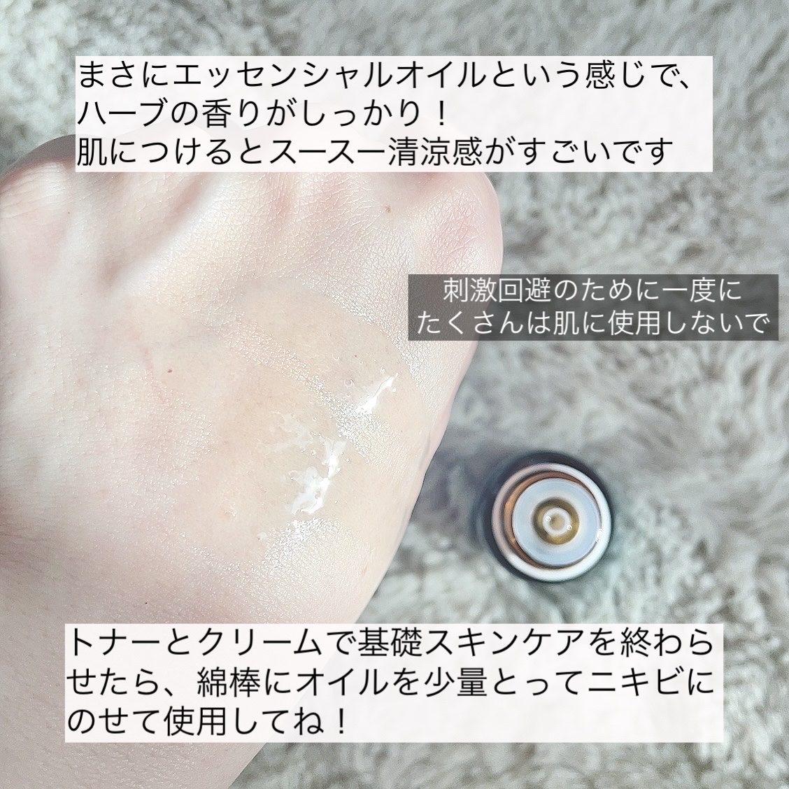 - <20ml> グリセリン、エタノール、ツボクサエキス、ドクダミエキス、カミツレ花エキス、ヒアルロン酸、ローズマリー葉エキス、カンゾウ根エキス、ポリソルベート60、グリセリルグルコシド、精製水、シロキクラゲ多糖体、オウゴンエキス、カプリロイルグリシン、リモネン、緑茶エキス、ビンセトキシクムアトラツムエキス、イソオイゲノール、オリーブオイル、イタドリエキス、1,2-ヘキサンジオール、ティーツリーオイル、3-ブチレングリコール、000ppm)、4-テルピネオール(130、ティーツリー葉油(10、ホホバシードオイル、スウィートアーモンドオイル <15ml> グリセリン、エタノール、ツボクサエキス、ドクダミエキス、カミツレ花エキス、ヒアルロン酸、ローズマリー葉エキス、カンゾウ根エキス、ポリソルベート60、グリセリルグルコシド、精製水、シロキクラゲ多糖体、オウゴンエキス、カプリロイルグリシン、リモネン、緑茶エキス、ビンセトキシクムアトラツムエキス、イソオイゲノール、オリーブオイル、イタドリエキス、1,2-ヘキサンジオール、ティーツリーオイル、3-ブチレングリコール、000ppm)、4-テルピネオール(130、ティーツリー葉油(10、ホホバシードオイル、スウィートアーモンドオイル