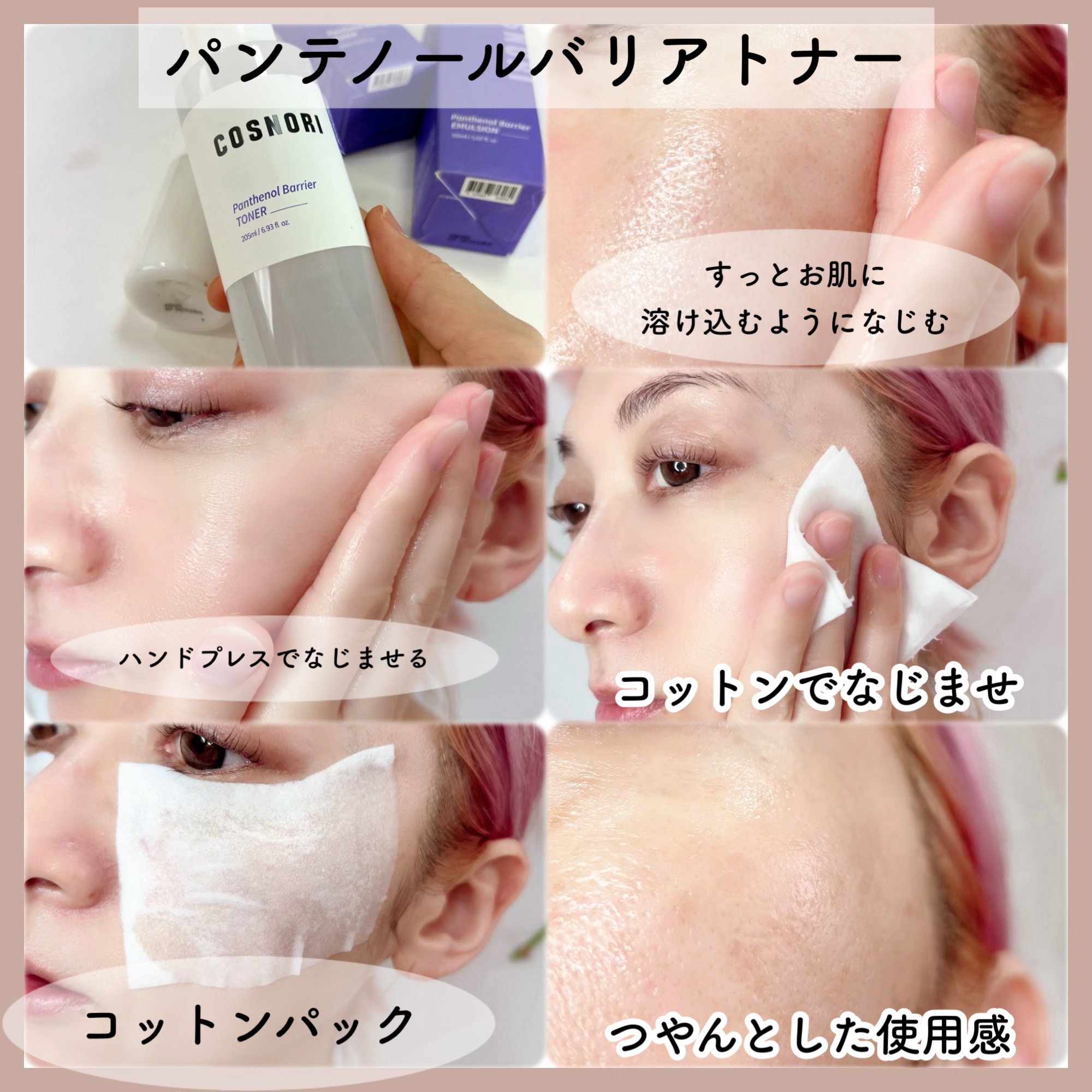 パンテノール50,000ppm配合 ビタミンCを豊富気含み肌コンディションを上げる さっぱりした水分感のウォーターフォーミュラー トナーはパシャパシャな水のようなテクスチャ。 メイク前にコットンパックとして使うとふっくらもっちり肌になってメイクのりも良くなります🍀