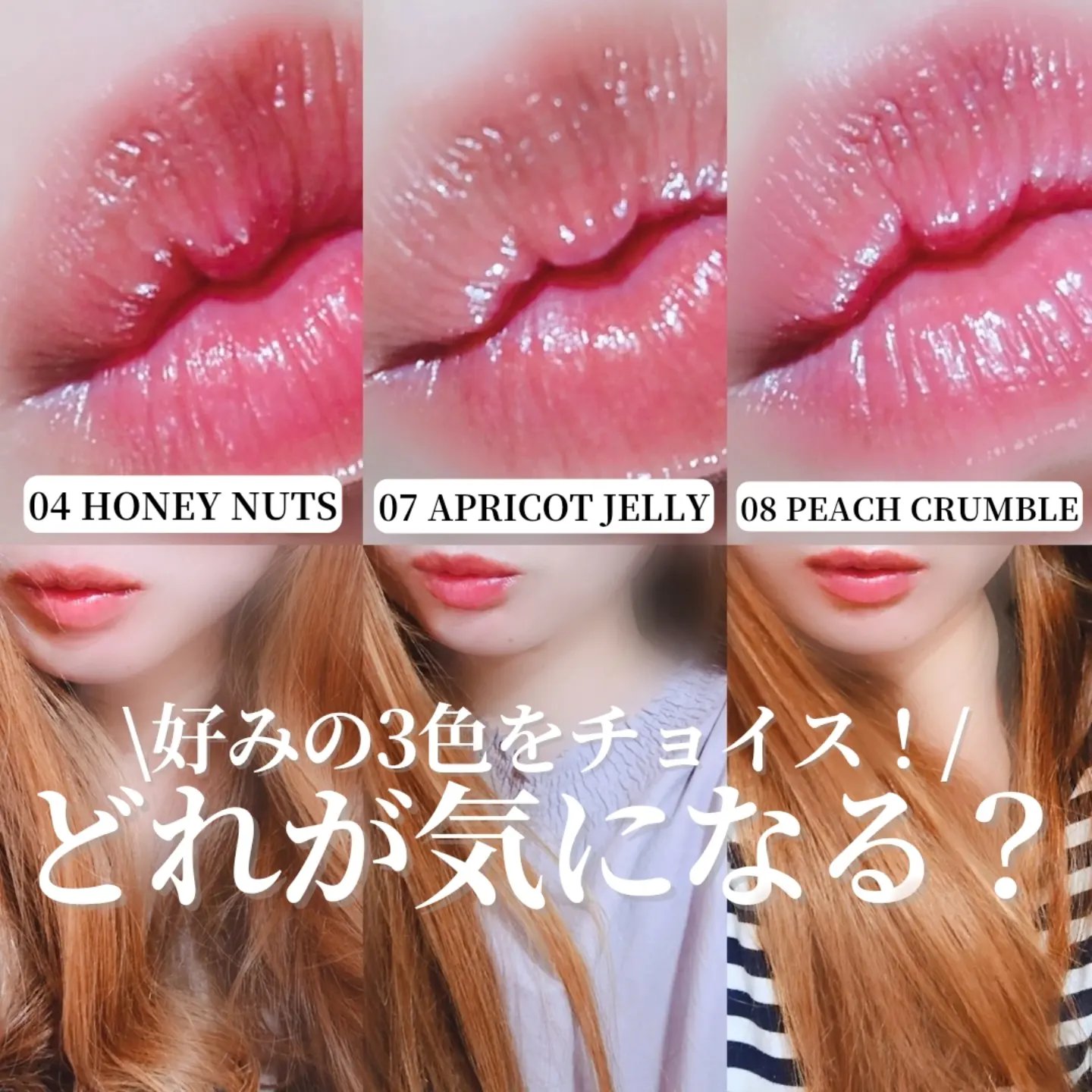 - <01 PEACH FONDUE> リンゴ酸ジイソステアリル、ダイマージリノール酸ダイマージリノレイルビス (ベヘニル/イソステアリル/フィトステリル)、トリイ ソステアリン酸ポリグリセリル-2、パラフィン、トリメリト酸トリトリデシル、ビスジグリセリルポリアシルアジペートー2、テトライソステア リン酸ペンタエリスリチル、マイクロクリスタリンワックス、イソステアリン酸ソルビタン、1,2-ヘキサンジオール、合成ワックス、ジステ アルジモニウムヘクトライト、(エチレン/プロピレン)コポリマー、炭酸プロピレン、香料、アボカド油、シア脂、アンズ核油、黄5、酸化チタン、赤104(1)、赤202、黄4 <02 BERRY MILK TEA> リンゴ酸ジイソステアリル、ダイマージリノール酸ダイマージリノレイルビス (ベヘニル/イソステアリル/フィトステリル)、トリイ ソステアリン酸ポリグリセリル-2、パラフィン、トリメリト酸トリトリデシル、ビスジグリセリルポリアシルアジペート-2、テトライソステア リン酸ペンタエリスリチル、マイクロクリスタリンワックス、イソステアリン酸ソルビタン、1,2-ヘキサンジオール、合成ワックス、ジステ アルジモニウムヘクトライト、(エチレン/プロピレン)コポリマー、炭酸プロピレン、香料、アボカド油、シア脂、アンズ核油、酸化チタン、黄5、赤104(1)、赤202、青1、黄4 <03 GRAPEFRUIT CRUSH> リンゴ酸ジイソステアリル、ダイマージリノール酸ダイマージリノレイルビス (ベヘニル/イソステアリル/フィトステリル)、トリイ ソステアリン酸ポリグリセリル-2、パラフィン、トリメリト酸トリトリデシル、ビスジグリセリルポリアシルアジペート-2、テトライソステア リン酸ペンタエリスリチル、マイクロクリスタリンワックス、イソステアリン酸ソルビタン、1,2-ヘキサンジオール、合成ワックス、ジステ アルジモニウムヘクトライト、(エチレン/プロピレン)コポリマー、炭酸プロピレン、香料、アボカド油、シア脂、アンズ核油、酸化チタン、黄5、赤104(1)、赤202、青1、黄4 <04 HONEY NUT> リンゴ酸ジイソステアリル、ダイマージリノール酸ダイマージリノレイルビス (ベヘニル/イソステアリル/フィトステリル)、トリイ ソステアリン酸ポリグリセリル-2、パラフィン、トリメリト酸トリトリデシル、ビスジグリセリルポリアシルアジペート-2、テトライソステア リン酸ペンタエリスリチル、マイクロクリスタリンワックス、イソステアリン酸ソルビタン、1,2-ヘキサンジオール、合成ワックス、ジステ アルジモニウムヘクトライト、(エチレン/プロピレン)コポリマー、炭酸プロピレン、香料、アボカド油、シア脂、アンズ核油、酸化チタン、黄5、赤104(1)、赤202、青1、黄4 <05 BERRY COKE> リンゴ酸ジイソステアリル、ダイマージリノール酸ダイマージリノレイルビス (ベヘニル/イソステアリル/フィトステリル)、トリイ ソステアリン酸ポリグリセリル-2、パラフィン、トリメリト酸トリトリデシル、ビスジグリセリルポリアシルアジペートー2、テトライソステア リン酸ペンタエリスリチル、マイクロクリスタリンワックス、イソステアリン酸ソルビタン、1,2-ヘキサンジオール、合成ワックス、ジステ アルジモニウムヘクトライト、(エチレン/プロピレン)コポリマー、炭酸プロピレン、香料、アボカド油、シア脂、アンズ核油、酸化チタン、赤104(1)、黄5、赤202、黄4 <06 CHERRY SMOOTHIE> リンゴ酸ジイソステアリル、ダイマージリノール酸ダイマージリノレイルビス (ベヘニル/イソステアリル/フィトステリル)、トリイ ソステアリン酸ポリグリセリル-2、パラフィン、トリメリト酸トリトリデシル、ビスジグリセリルポリアシルアジペートー2、テトライソステア リン酸ペンタエリスリチル、マイクロクリスタリンワックス、イソステアリン酸ソルビタン、1,2-ヘキサンジオール、合成ワックス、ジステ アルジモニウムヘクトライト、(エチレン/プロピレン)コポリマー、炭酸プロピレン、香料、アボカド油、シア脂、アンズ核油、酸化チタン、赤104(1)、黄5、赤202、黄4
