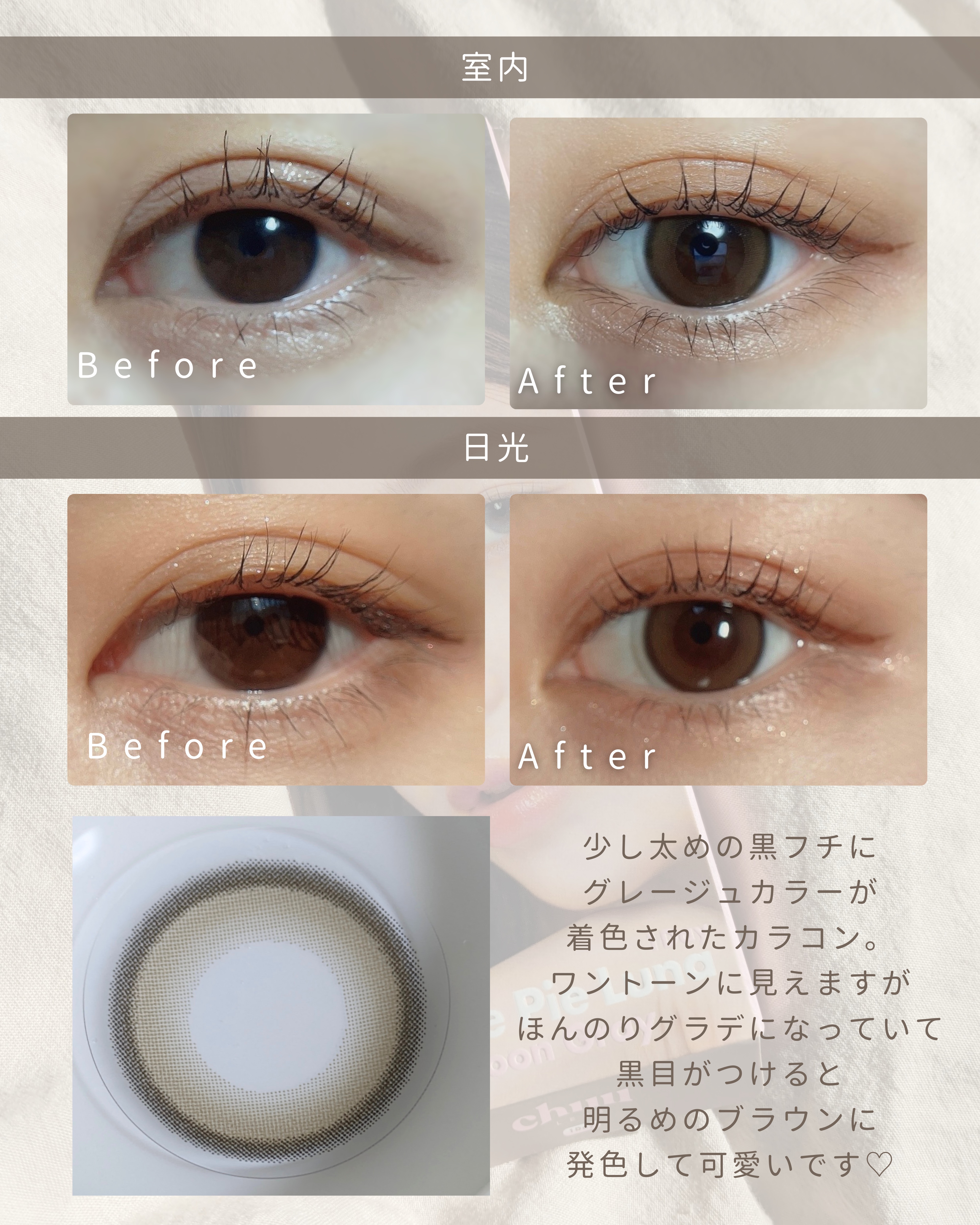 | カラコンランキング第121位 | ベージュっぽくも少しグレーっぽくも見えて、色素薄めスタイルにとても合います。 | 詳細を見る | ||