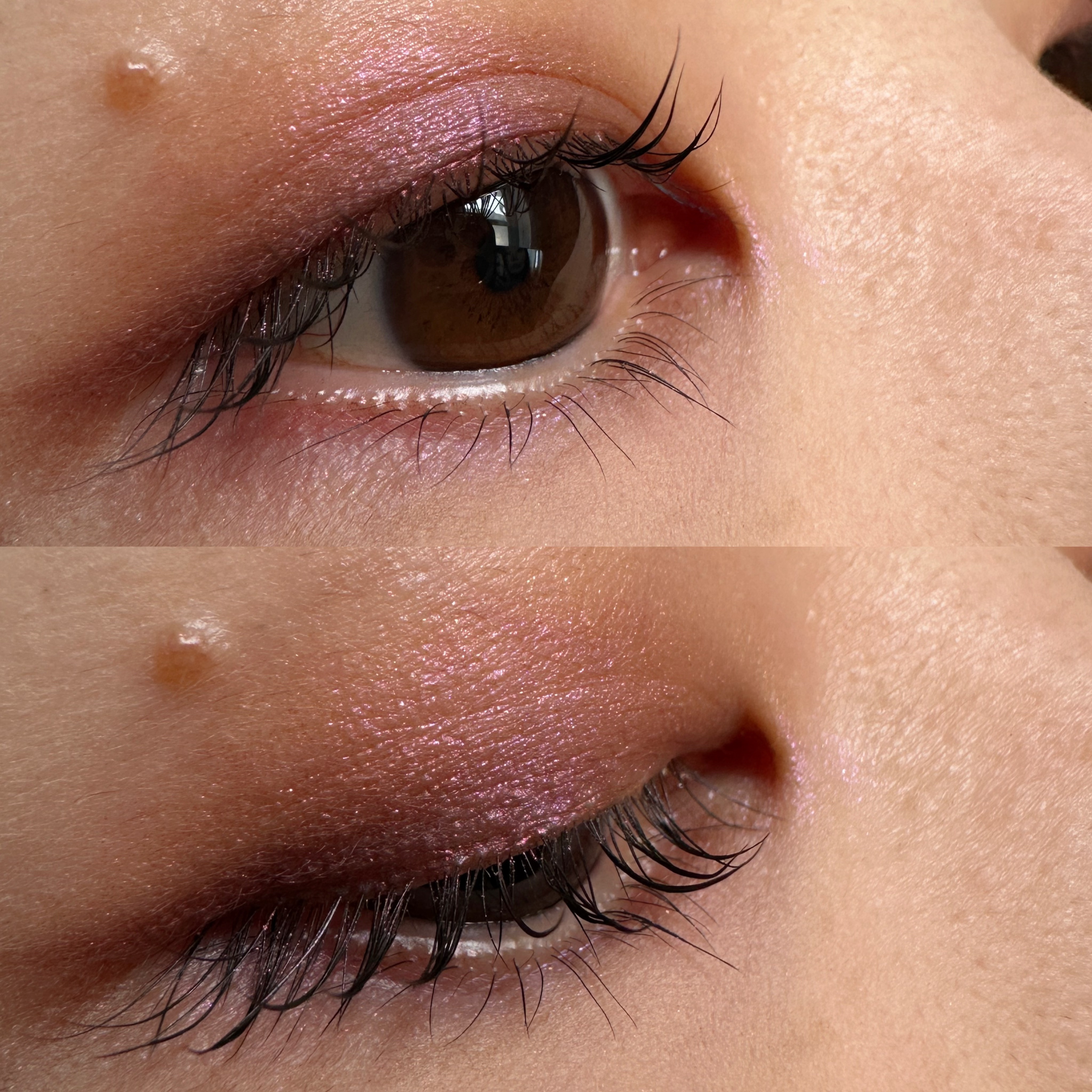マットは今回購入して無いので粉質は分かりませんが、シマー、パール系はしっとり艶々、グリッターはベース色薄めの細かいラメでラメ飛びも気にならず🙆♀️ ブラシよりもチップもしくは指塗りでボカしにブラシを使うのがオススメです💡 Qoo10やAmazonでも販売されてるけど、公式サイトが1番送料が安かったです💫