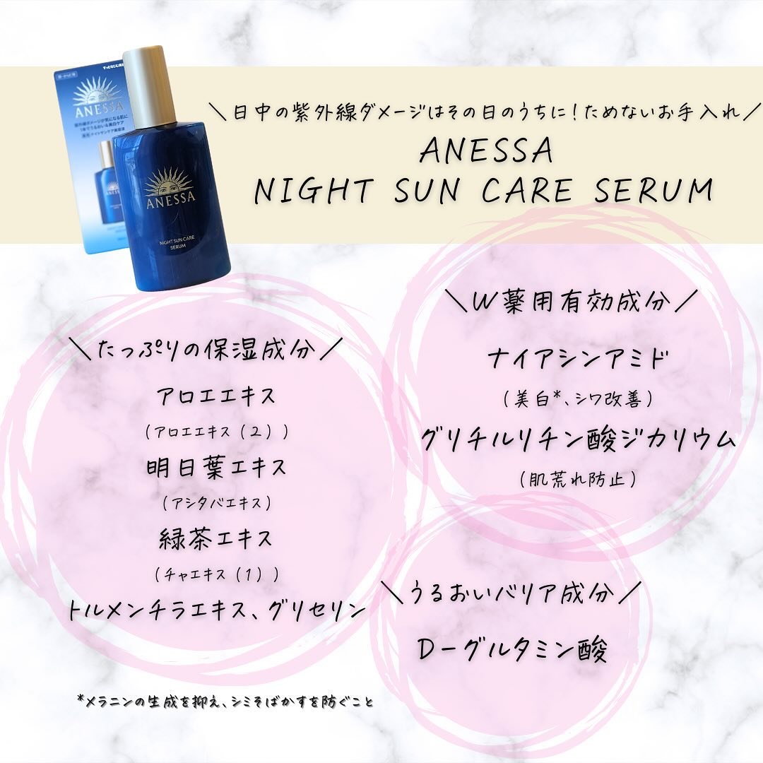 日焼け止め乳液を買った時、おまけでもらったセラムがよくて購入陽を浴びた後のお守り的な感じで塗ってるクリームみたいにベタベタしない👍予防も大事だけど、しっかり落としてアフターケアも!ミニのやつまたもらった🌞🐳#anessa#ナイトサンケアセラム...