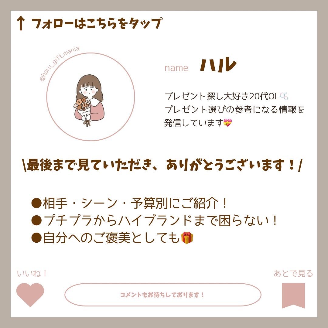 あげたら絶対喜ばれるプレゼントをリールにまとめてみたので、参考にしてみてください🫶 このアカウントでは、 ◎相手・シーン・予算別にご紹介! ◎プチプラからハイブランドまでを ご紹介しています✨ フォローしてくれたら嬉しいです!
