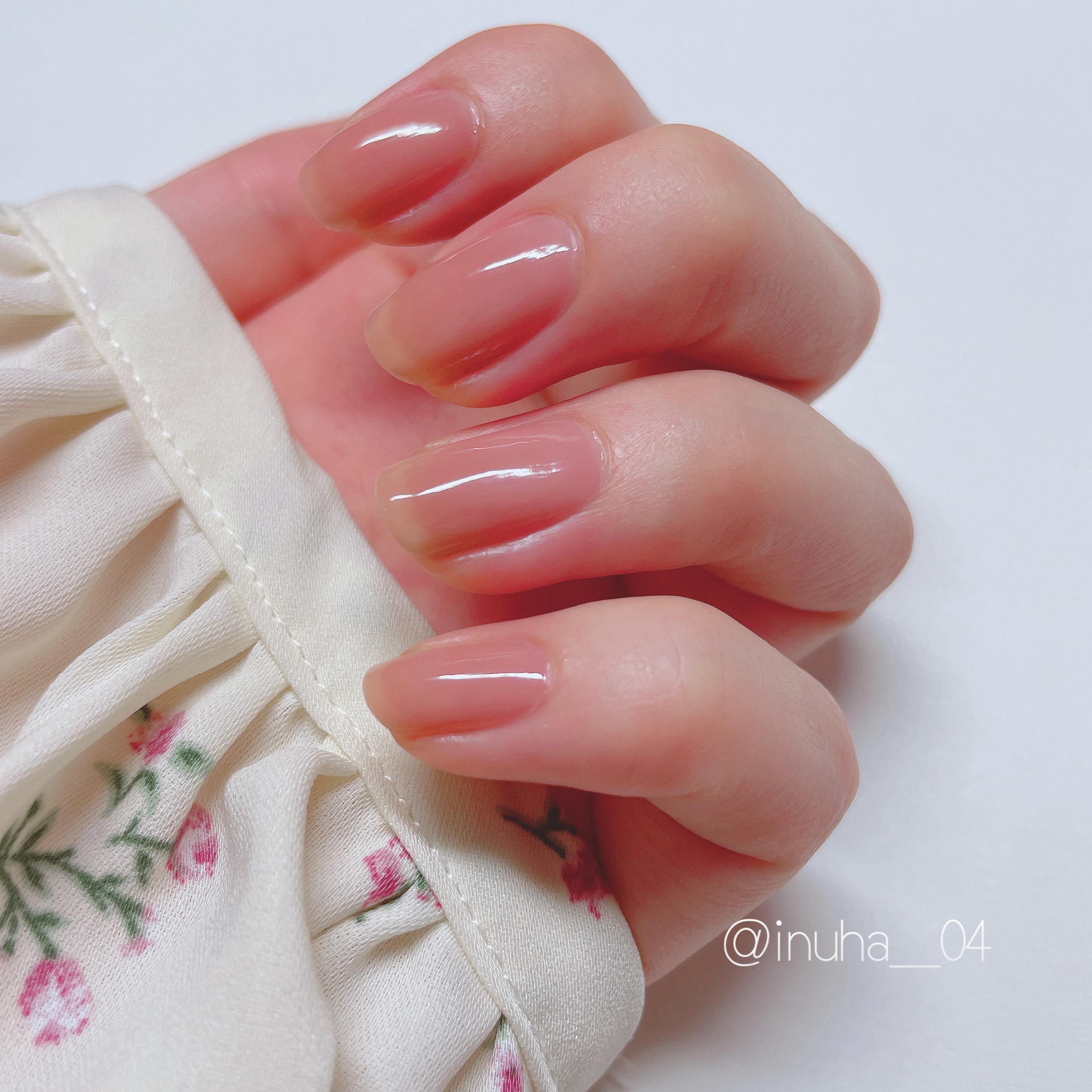 爪にピンクの薄い膜が張ったような見た目に。 キャンメイクのファンデーションカラーズは透け感のある仕上がりだから、ナチュラルなネイルが好きな方におすすめ‼︎ 単色塗りでも十分可愛いけど、少しラメを重ねてアレンジしたらさらに可愛い〜♡