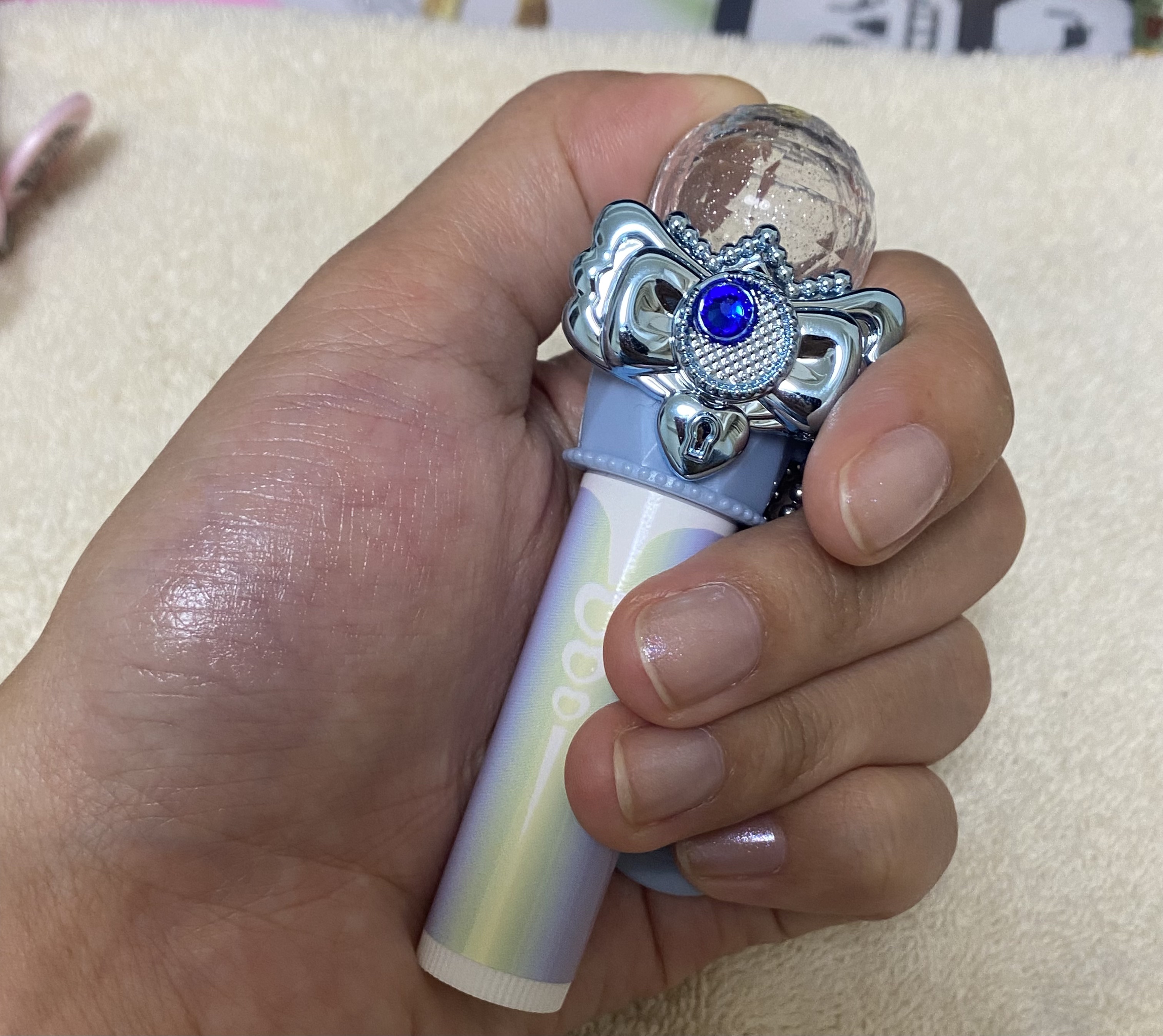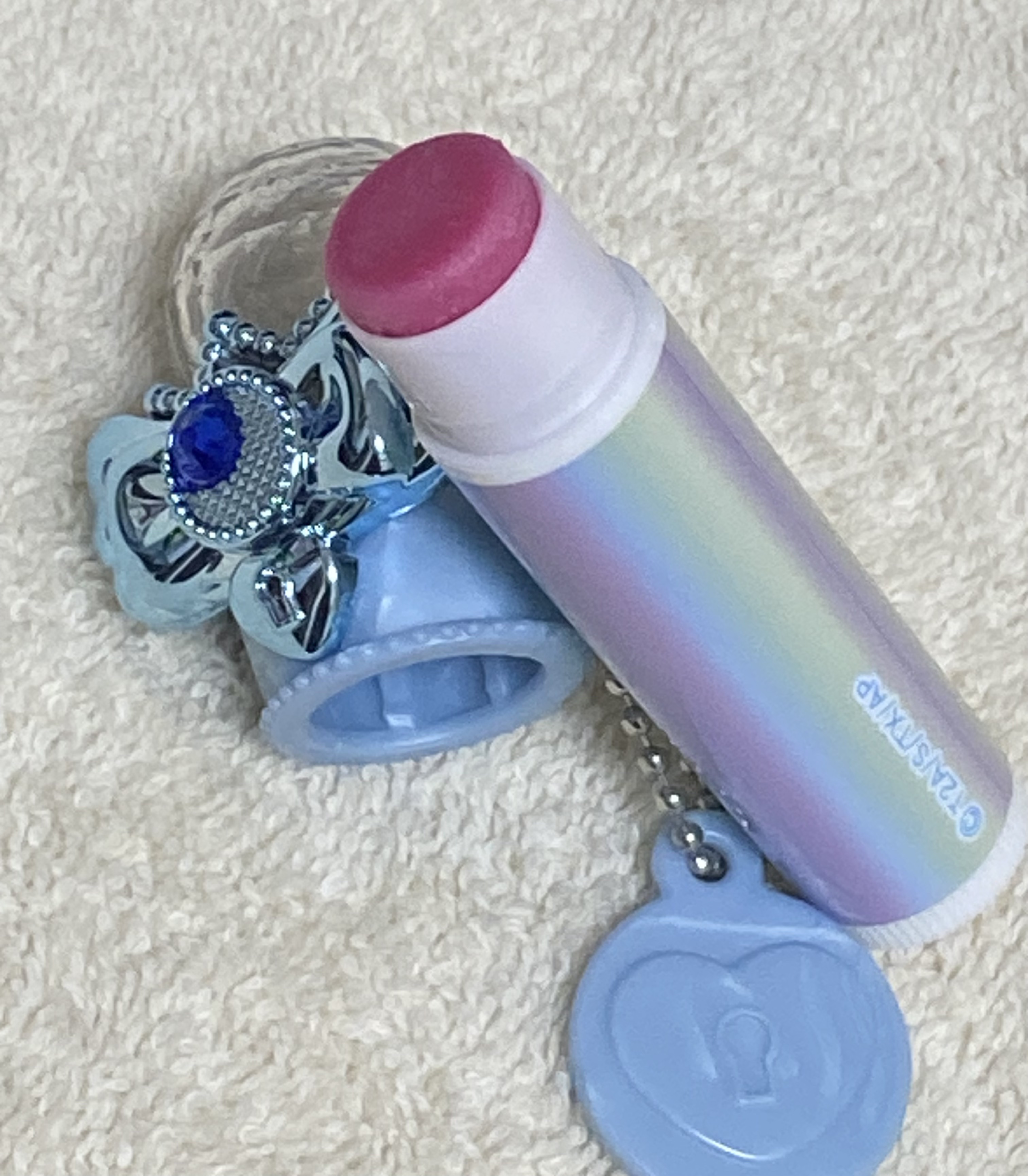 こちらは今放送している、わんだふるプリキュア!に登場するキュアニャミー、キュアリリアンの変身アイテムになります。 真ん中にあるハートのラインストーンが可愛いです! ふたを開けると、これもアニメ通り白猫が描かれてるクルクル回る内蓋が内蔵されています。 最近の幼児コスメは進化してるなぁのしみじみ感じました。私の頃はアイシャドウは色つかないしチークも色全然つかないとか当たり前だったのに、こちらの商品は目に見えて発色してるのがわかります。