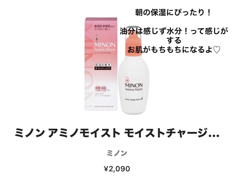 ミノン ミノン アミノモイスト モイストチャージ ローション Ⅱ もっとしっとりタイプ | 2,200円(編集部調べ) |