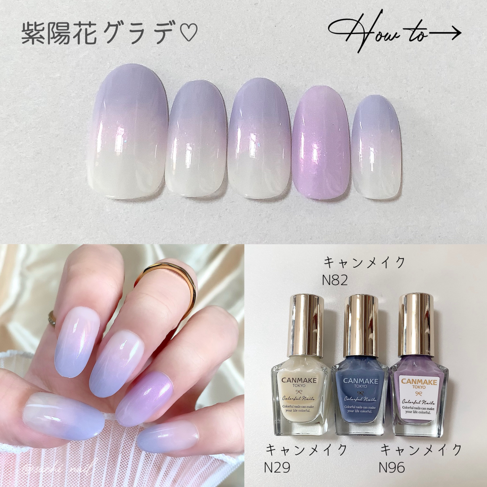こんにちわ♡今回はキャンメイクのマニキュア2色で出来る、簡単グラデネイルのご紹介です💕先端にかけて白くなるベイビーブーマーは、美爪に見えるのでグラデの中でもとても人気デザインですよね(*´꒳`*)やり方は画像を参考にしていただければと思います...