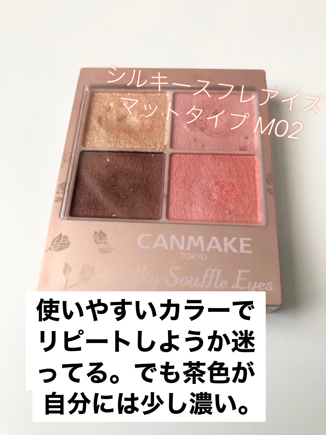 キャンメイク シルキースフレアイズマットタイプ今回はキャンメイクのシルキースフレアイズマットタイプ、"M02チャイブリック"をご紹介します✦質感✦マットアイシャドウ3色+ラメの4色パレットマットアイシャドウは韓国コスメのような完全にマットな質...