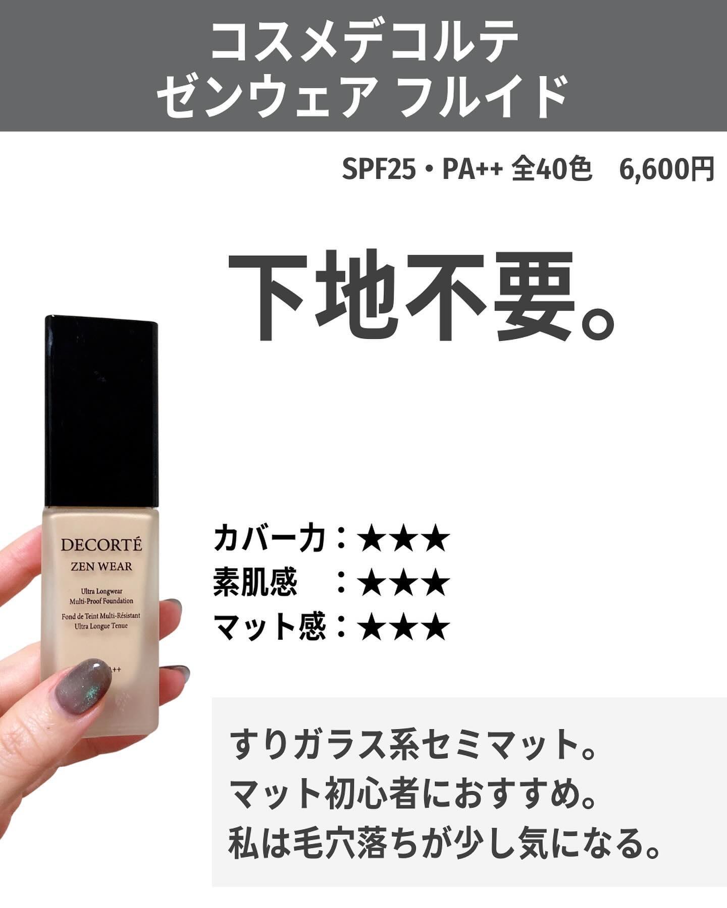 ファンデーションに美容液が入ってるんじゃない。 美容液が、ファンデーションを包み込んでる! たしかに洗顔後の顔の イキイキ度がエグい。 私と逆の 乾燥肌 コンシーラー特に使わない ナチュラルメイク派 素肌感が好き で、無類のつや肌好きで 部分的じゃなくて全体的に濡れつやにしたいなら バッチリ合うと思うよ。