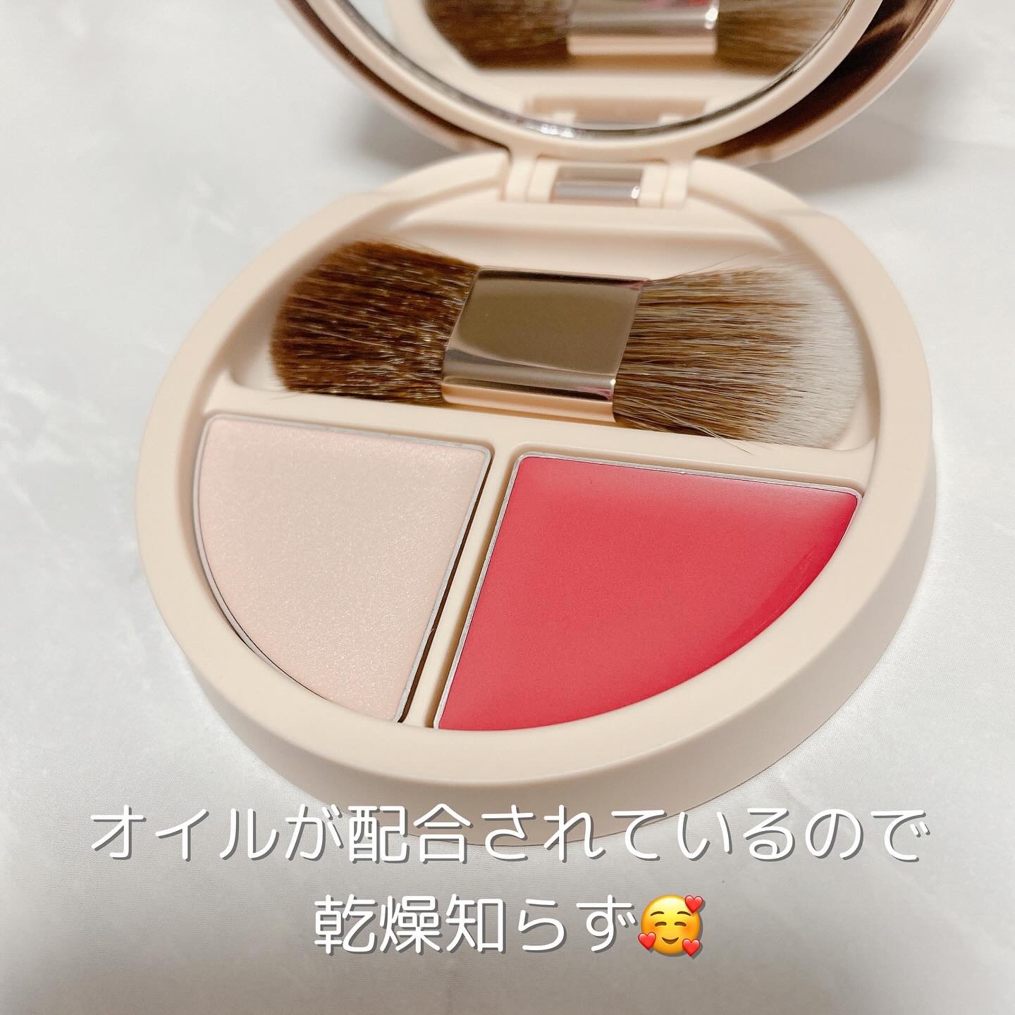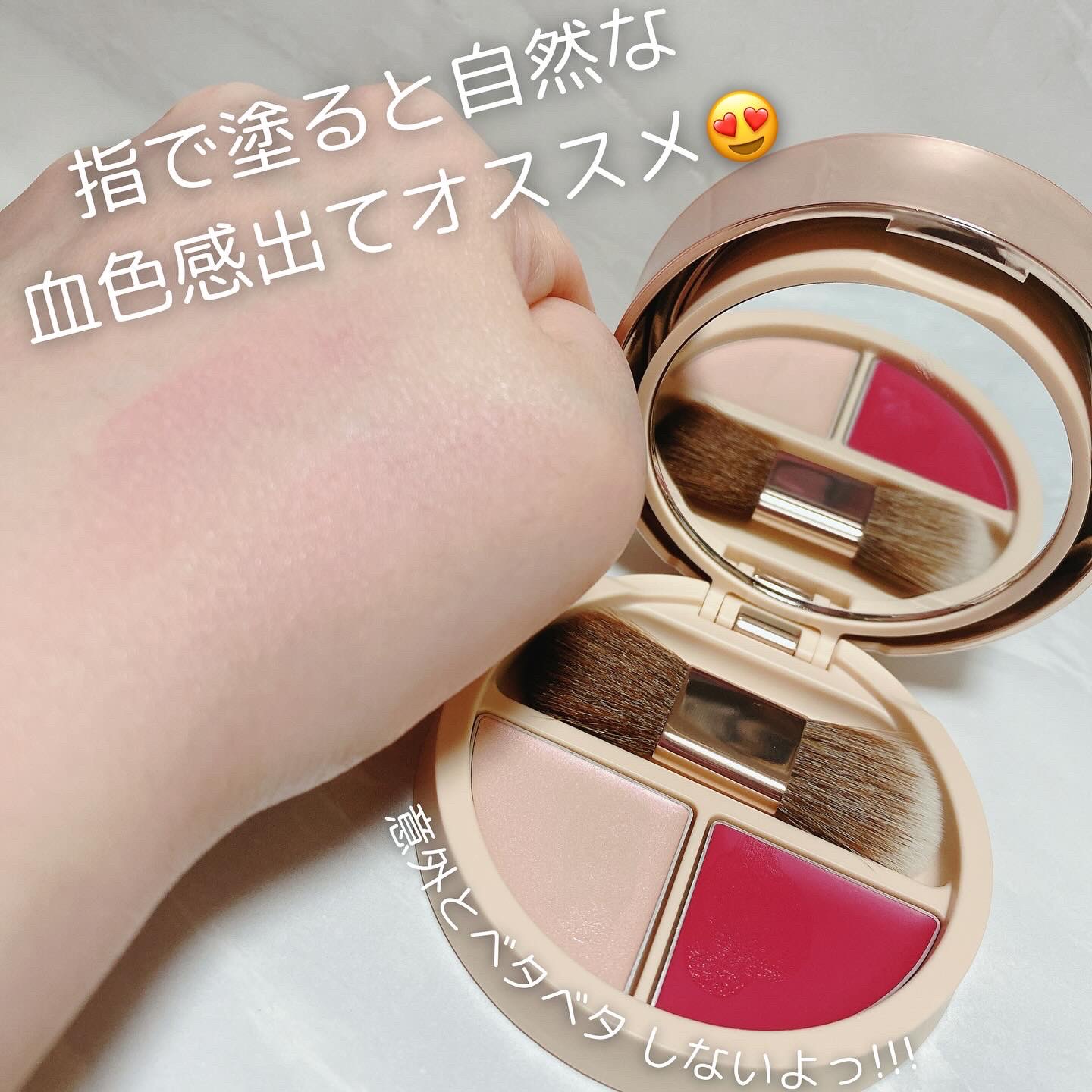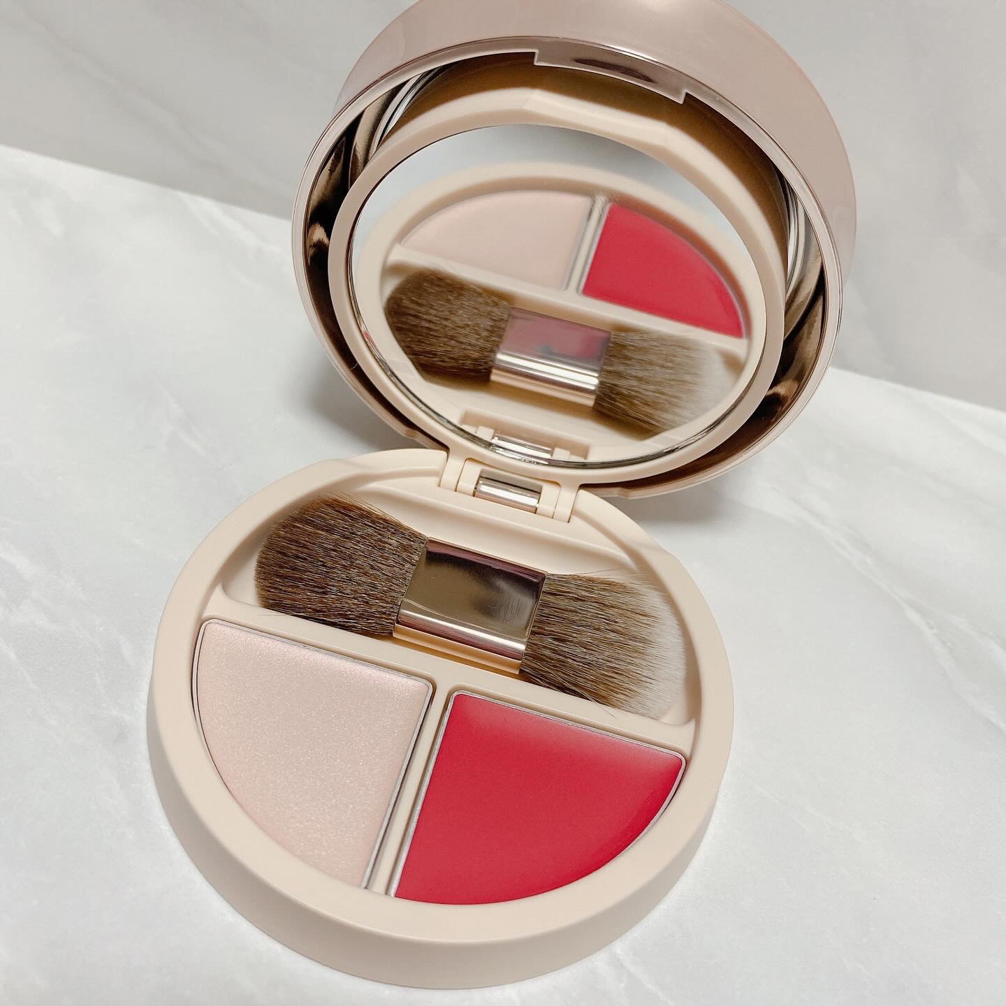 ピンクゴールドのパッケージ、女性の顔のデザインもキュート。 チーク&リップの夏らしいパキっとしたピンクが印象的です。 このところSNSでもチーク、アイシャドウ、リップを同じカラーで立体的に仕上げるメイクが目立ちます。