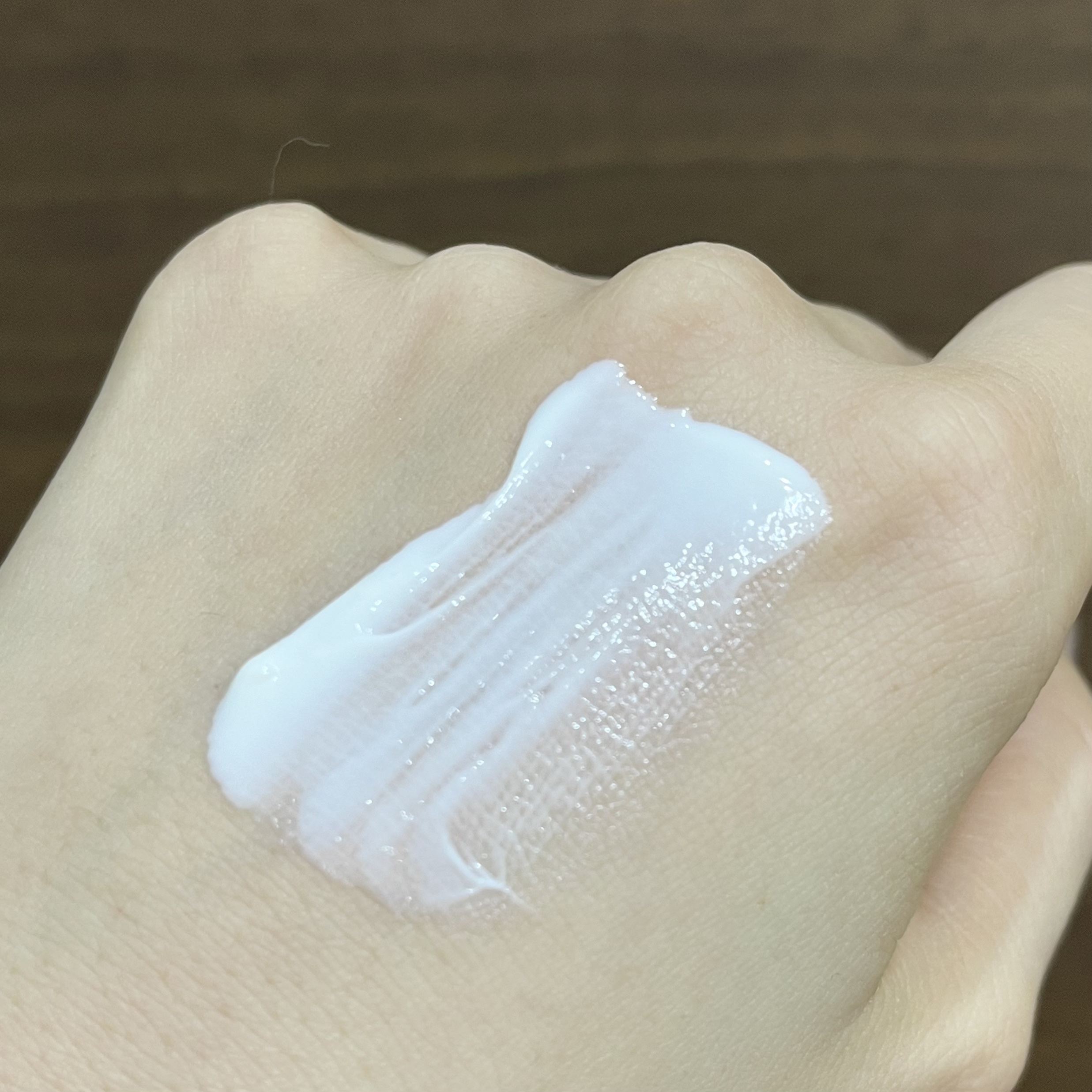 ジェルのようなテクスチャで塗り心地⭕️ 薄く伸び広がり、きしみやベタつきは感じません。 ペールピンク色でナチュラルに明るくトーンアップしました。 あくまでも自然、白くはなりません🤍 1つ目は香り。 クリアローズの香りがついてますが、これがかなり好みが分かれるかも。 2つ目はメイク後の乾燥。 これ単品だと適度にしっとり感があるけど、上からメイクするとすごく乾燥を感じました… 単品使用の時は汗をかいても白浮きしないけど、メイクを重ねると汗が白っぽく、粉っぽくなる💦