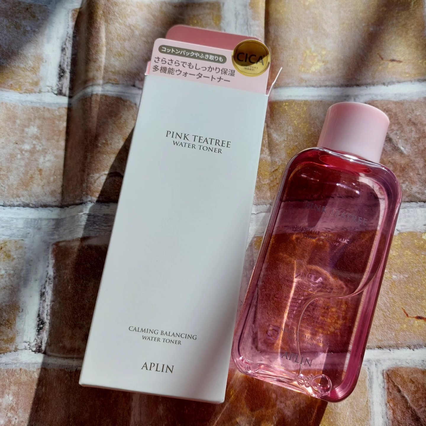 クリアピンクの見た目もかわいい、APLINのピンクティーツリートナー CICA成分や、ビタミンB12配合 ニキビケアにも効果的だそうです コットンパックもおすすめ! 大判のコットンにたっぷり含ませて、肌にのせてしばらくおくだけ