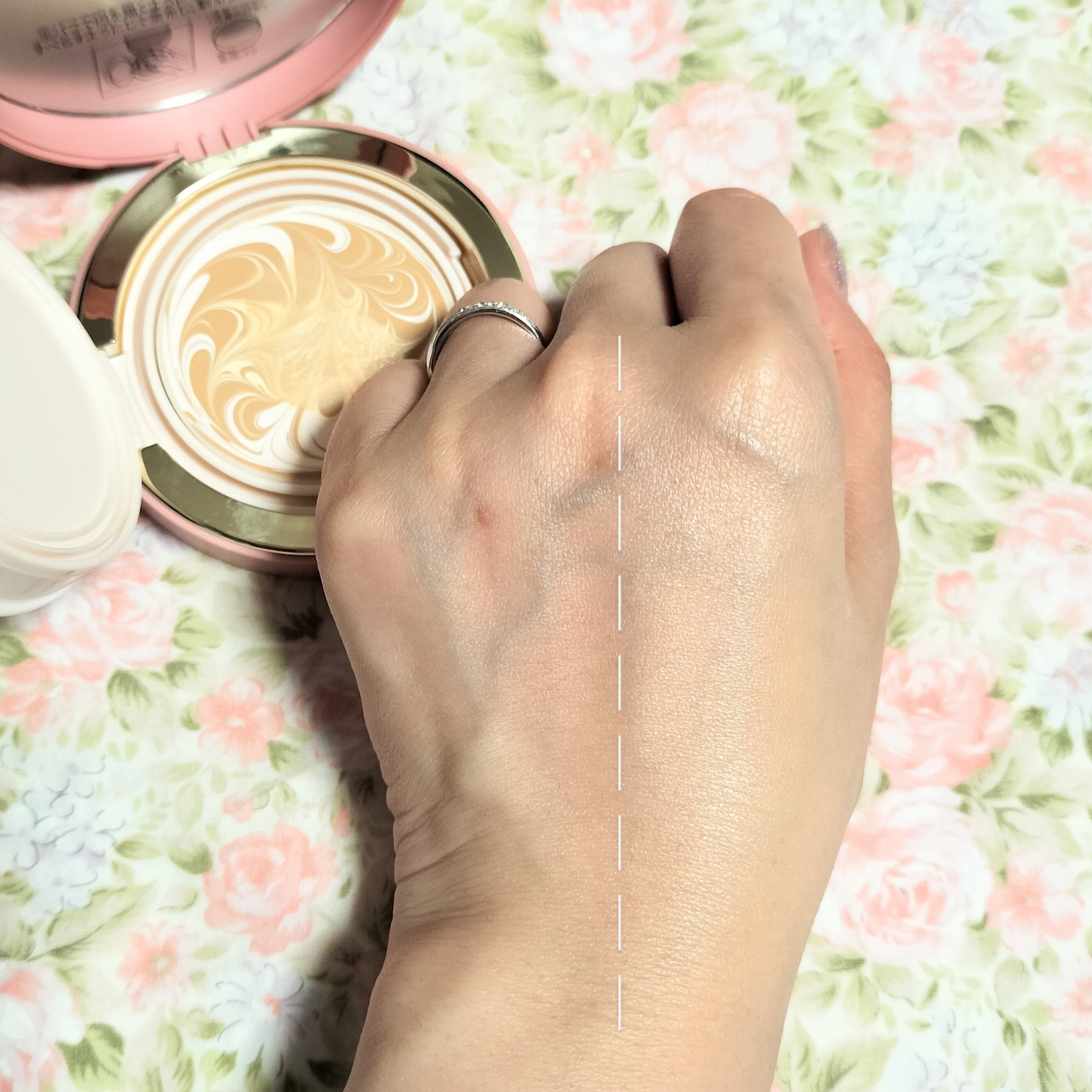 見た目が可愛くてテンションが上がります。3色がマーブル模様になっていて、混ぜるたびにフレッシュな仕上がりになりそうな感じがします。 驚くほどしっとり!「エッセンスポケット」技術のおかげか、まるでスキンケアをしているかのような潤い感があります。 ツヤ感がすごい!厚塗り感がないのに、自然な透明感と血色感がプラスされて、素肌がキレイに見える仕上がりになります。