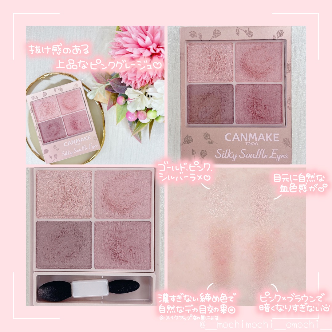 - シルキースフレアイズの姉妹品♡ 肌に溶け込むような透けマットシャドウ 透け感のある柔らかい仕上がりになるマット3色と、透け発色の繊細ラメ1色のパレットシャドウ♡ 完全マットアイや、ラメ×マットアイなど、メイクのパターンを楽しみましょう!