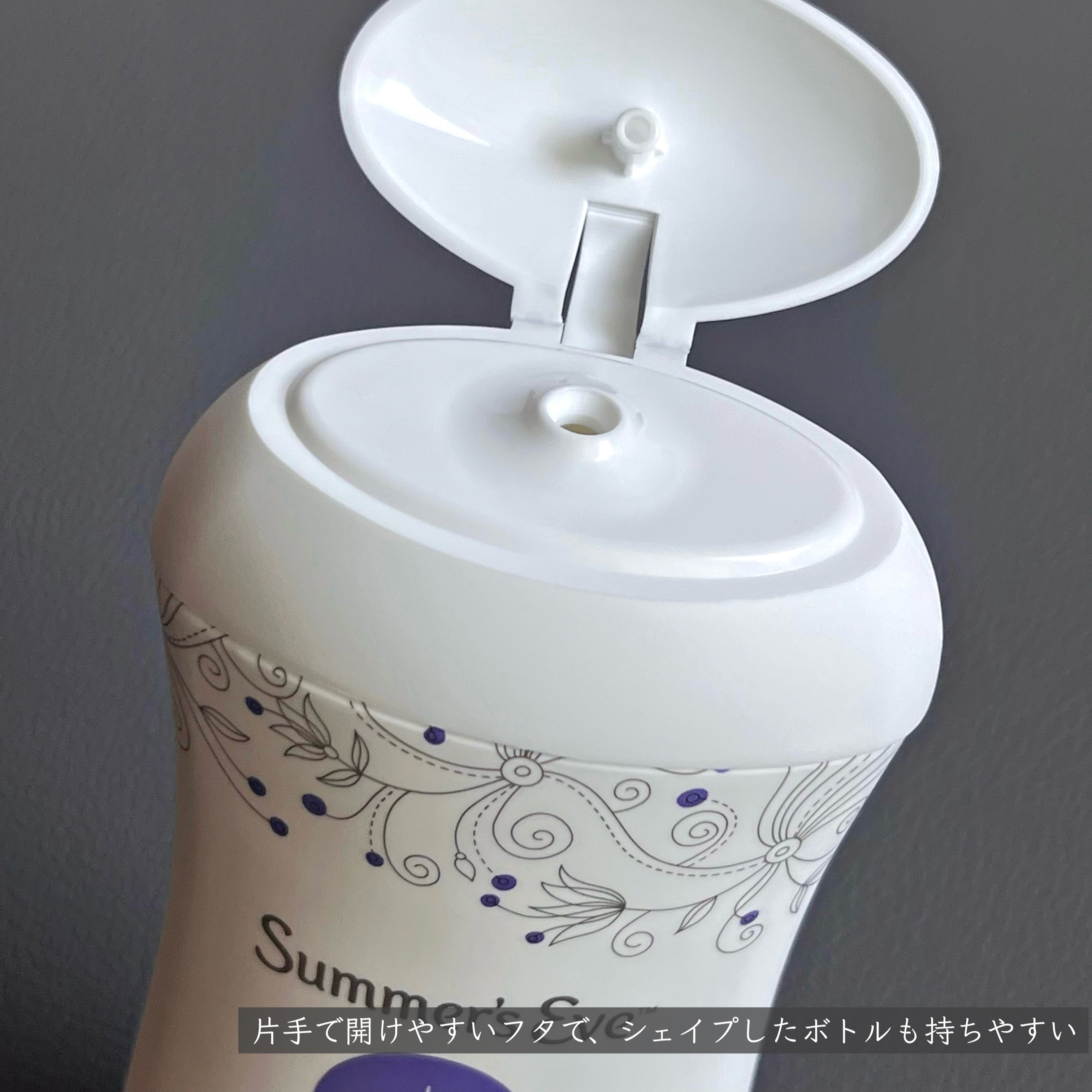 - 肌に優しい使い心地のデリケートゾーン用ボディウォッシュです。デリケートな肌のphに合わせてつくられた弱酸性設計。潤いをキープしながら、気になるデリケートな汚れをさっぱりクレンジングします。 デリケートゾーンのニオイ*やムレ、カサツキなどに悩まれている方にもおすすめです。 *古い角質や汚れによる 【日米話題のデリケートゾーンケアブランド】 Summer’s Eve(サマーズイブ)は、アメリカで生まれたデリケートゾーンケアブランドです。1972年から、フェムテック分野のパイオニアとして、世界30カ国以上で販売しています。日本での販売は2013年から。アメリカ、日本の両国でデリケートゾーンケアの売上シェア1位*を獲得しています。 *IRI Market Advantageデータ 米国婦人衛生用品ブランド別金額シェア2020年12月調べ(12カ月計) *富士経済「美容家電・化粧雑貨マーケティングトレンドデータ2018」マーケットシェア、デリケートゾーン用洗浄・シート市場、金額ベース、2016年実績 【専門機関による各種テストを実施】 安全性使用テストを発売前にすべての製品で実施 ① パッチテスト*:専門機関監修のもと、一定期間使用し、肌にアレルギー症状が出ないかテスト済 ②エチケット効果テスト:サマーズイブを使用してエチケット対策の変化に関するテストを実施 *すべての方にアレルギーや刺激が起こらないわけではありません。