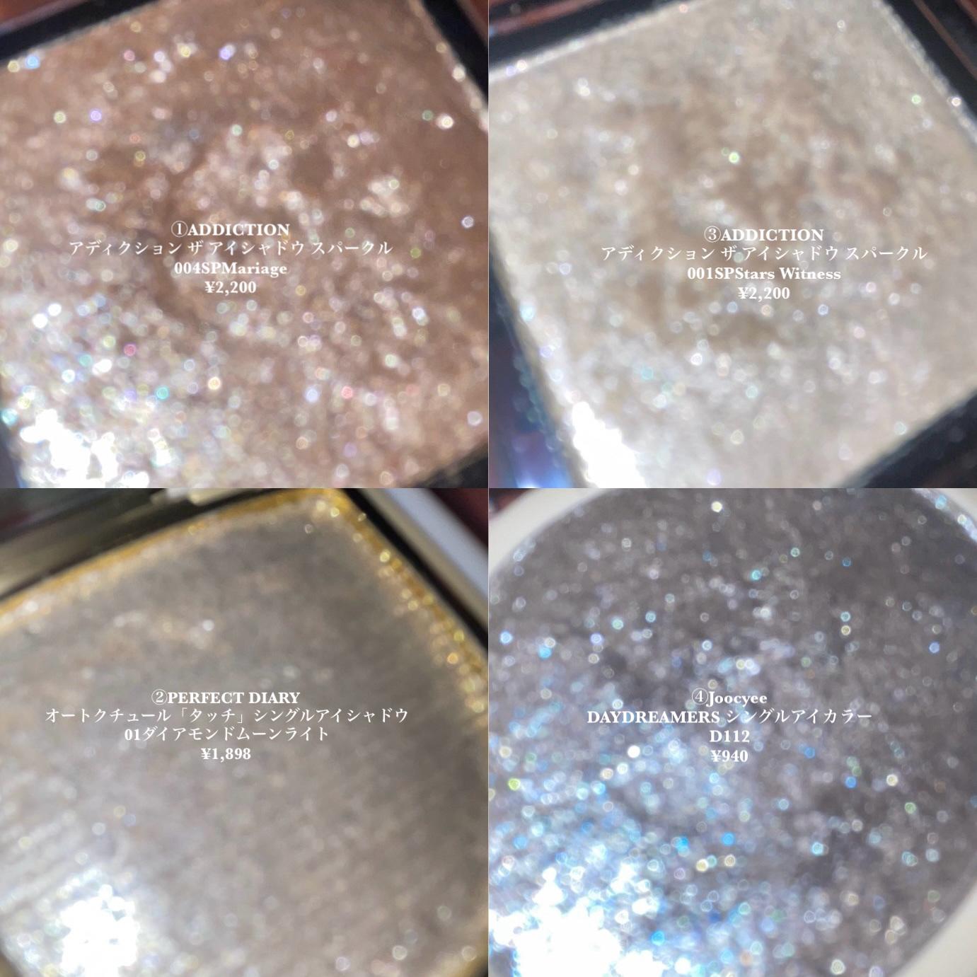 ⛄️冬のホワイトラメ2選⛄️①PERFECTDIARYオートクチュール「タッチ」シングルアイシャドウ01ムーンライト1890円(税込)②HOLIKAHOLIKAマイフェイブピースアイフローズン53FROSTY(フロスティ)1300円(Qoo1...