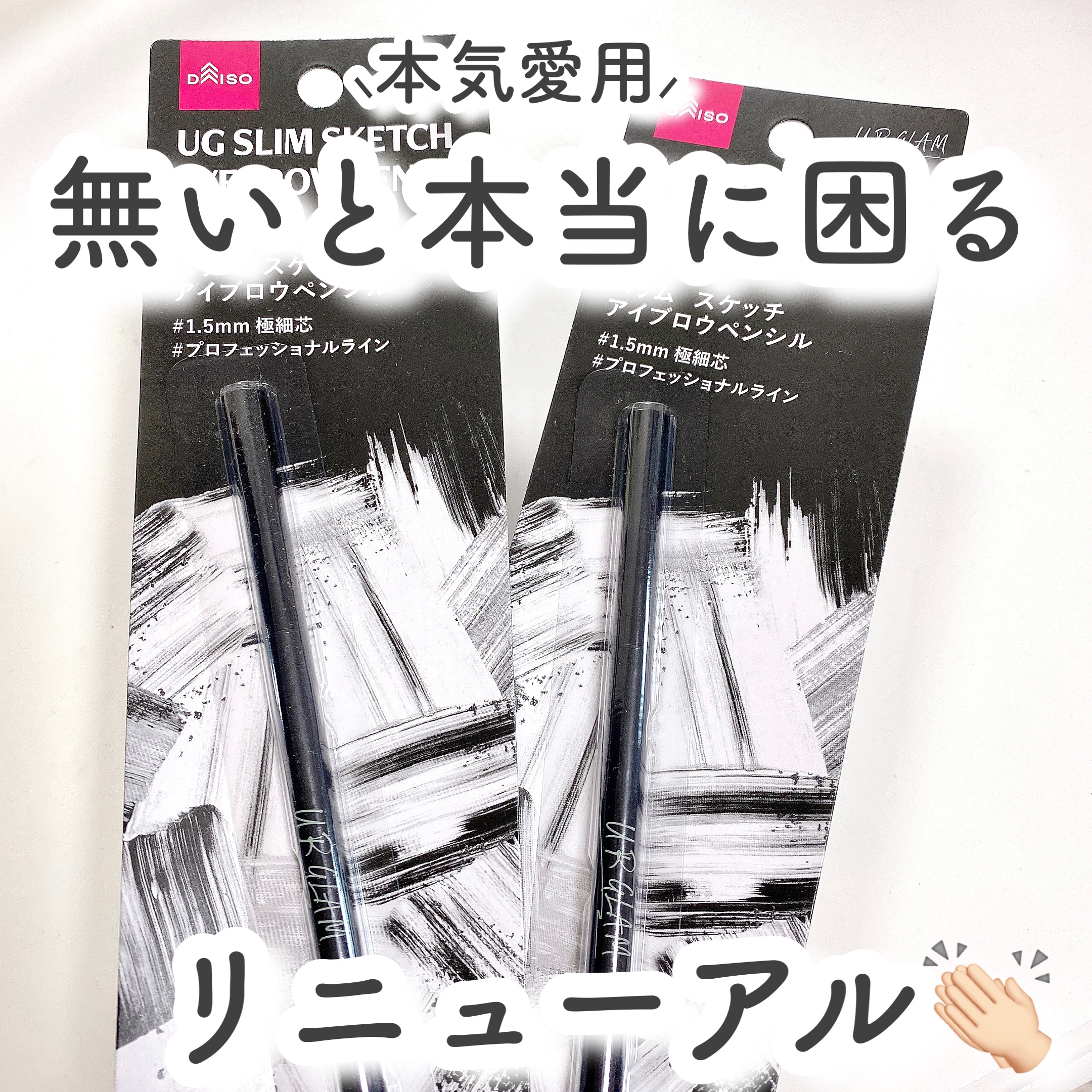 コスパ良し、発色良しのアイブロウペンシル! ずっとUGのを使っていて、新しくでたUGTも試してみたので比較しました! UGT アイブロウペンシル GD 01cはUGと比べると芯は太めで、しっかり発色してくれます! また折れにくいです🙆♀️ 100均とは言えど、発色も持ちもいいのでおすすめです!