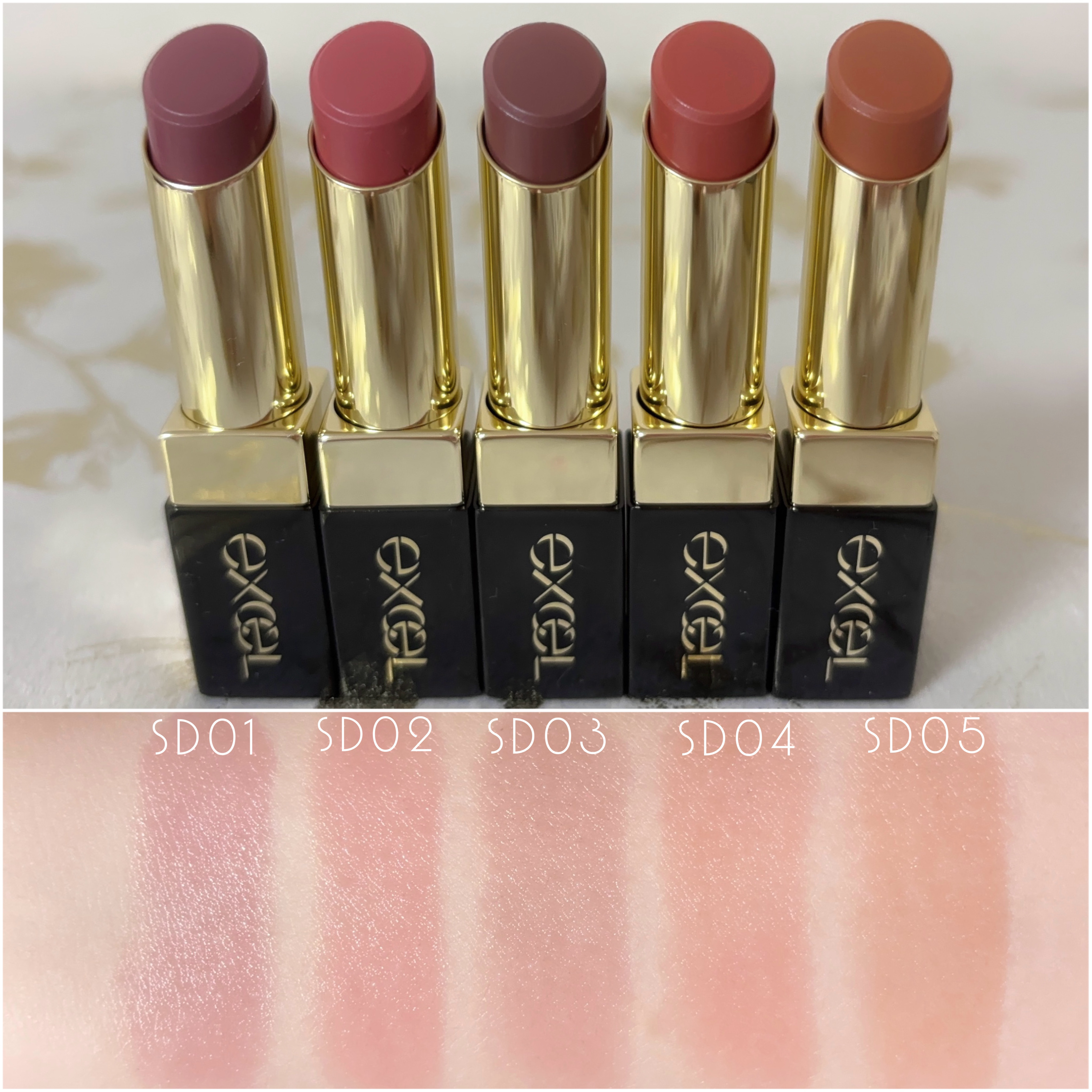 @excelmakeリップステディ全5色今回はブルベよりの3色をGET🩷SD01ブライズメイドサマーソフトおススメ少しトーン暗めのローズベージュSD02トークトゥユーサマーライトおススメ公式にはピーチベージュとあったけどそんなに黄味感は感じな...