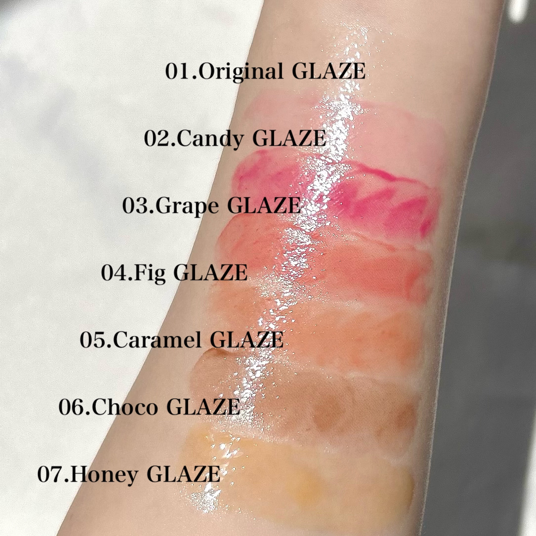- <01 オリジナルグレイズ> ダイマージリノール酸(フィトステリル/イソステアリル/セチル/ステアリル/ベヘニル)、リンゴ酸ジイソステアリル、水添ポリイソブテン、ジ安息香酸PG、トリイソステアリン酸ポリグリセリル-2、セレシン、ポリヒドロキシステアリン酸、乳酸メンチル、合成ワックス、シリカ、(エチレン/プロピレン)コポリマー、(カプリル酸/カプリン酸)グリセリル、ホウケイ酸(Ca/チタン、エチルヘキシルグリセリン、香料、酸化チタン、酸化スズ、アボカド油、ツバキ種子油、プルーン種子油、アルガニアスピノサ核油、水、BG、ハチミツエキス、フェノキシエタノール <02 キャンディグレイズ> ダイマージリノール酸(フィトステリル/イソステアリル/セチル/ステアリル/ベヘニル)、リンゴ酸ジイソステアリル、水添ポリイソブテン、ジ安息香酸PG、トリイソステアリン酸ポリグリセリル-2、セレシン、ポリヒドロキシステアリン酸、乳酸メンチル、合成ワックス、シリカ、(エチレン/プロピレン)コポリマー、(カプリル酸/カプリン酸)グリセリル、酸化チタン、エチルヘキシルグリセリン、香料、赤202、黄4、青1、水酸化Al、アボカド油、ツバキ種子油、プルーン種子油、アルガニアスピノサ核油、水、BG、ハチミツエキス、フェノキシエタノール <03 グレープグレイズ> ダイマージリノール酸(フィトステリル/イソステアリル/セチル/ステアリル/ベヘニル)、水添ポリイソブテン、リンゴ酸ジイソステアリル、ジ安息香酸PG、トリイソステアリン酸ポリグリセリル-2、セレシン、乳酸メンチル、ポリヒドロキシステアリン酸、合成ワックス、シリカ、(エチレン/プロピレン)コポリマー、酸化チタン、(カプリル酸/カプリン酸)グリセリル、エチルヘキシルグリセリン、赤202、酸化鉄、黄5、香料、水酸化Al、アボカド油、ツバキ種子油、プルーン種子油、アルガニアスピノサ核油、水、BG、ハチミツエキス、フェノキシエタノール <04 フィググレイズ> ダイマージリノール酸(フィトステリル/イソステアリル/セチル/ステアリル/ベヘニル)、水添ポリイソブテン、リンゴ酸ジイソステアリル、ジ安息香酸PG、トリイソステアリン酸ポリグリセリル-2、セレシン、ポリヒドロキシステアリン酸、乳酸メンチル、合成ワックス、シリカ、(エチレン/プロピレン)コポリマー、酸化チタン、(カプリル酸/カプリン酸)グリセリル、酸化鉄、エチルヘキシルグリセリン、香料、赤202、黄4、青1、水酸化Al、トリイソステアリン酸イソプロピルチタン、アボカド油、ツバキ種子油、プルーン種子油、アルガニアスピノサ核油、水、BG、ハチミツエキス、フェノキシエタノール <05 キャラメルグレイズ> ダイマージリノール酸(フィトステリル/、イソステアリル/セチル/ステアリル/ベヘニル)、水添ポリイソブテン、リンゴ酸ジイソステアリル、ジ安息香酸PG、トリイソステアリン酸ポリグリセリル-2、セレシン、乳酸メンチル、ポリヒドロキシステアリン酸、合成ワックス、シリカ、(エチレン/プロピレン)コポリマー、(カプリル酸/カプリン酸)グリセリル、酸化チタン、酸化鉄、エチルヘキシルグリセリン、ホウケイ酸(Ca/チタン)、香料、赤202、水酸化Al、トリイソステアリン酸イソプロピルチタン、プルーン種子油、アルガニアスピノサ核油、アボカド油、ツバキ種子油、水、酸化スズ、BG、ハチミツエキス、フェノキシエタノール <06 チョコグレイズ> ダイマージリノール酸(フィトステリル/イソステアリル/セチル/ステアリル/ベヘニル)、リンゴ酸ジイソステアリル、水添ポリイソブテン、ジ安息香酸PG、トリイソステアリン酸ポリグリセリル-2、セレシン、ポリヒドロキシステアリン酸、乳酸メンチル、合成ワックス、シリカ、(エチレン/プロピレン)コポリマー、(カプリル酸/カプリン酸)グリセリル、酸化鉄、エチルヘキシルグリセリン、香料、赤202、トリイソステアリン酸イソプロピルチタン、ツバキ種子油、プルーン種子油、アルガニアスピノサ核油、アボカド油、水、BG、ハチミツエキス <07 ハニーグレイズ> ダイマージリノール酸(フィトステリル/イソステアリル/セチル/ステアリル/ベヘニル)、リンゴ酸ジイソステアリル、水添ポリイソブテン、ジ安息香酸PG、トリイソステアリン酸ポリグリセリル-2、セレシン、ポリヒドロキシステアリン酸、乳酸メンチル、合成ワックス、シリカ、(エチレン/プロピレン)コポリマー、(カプリル酸/カプリン酸)グリセリル、エチルヘキシルグリセリン、黄4、香料、黄5、プルーン種子油、アルガニアスピノサ核油、アボカド油、ツバキ種子油、水、BG、ハチミツエキス、フェノキシエタノール