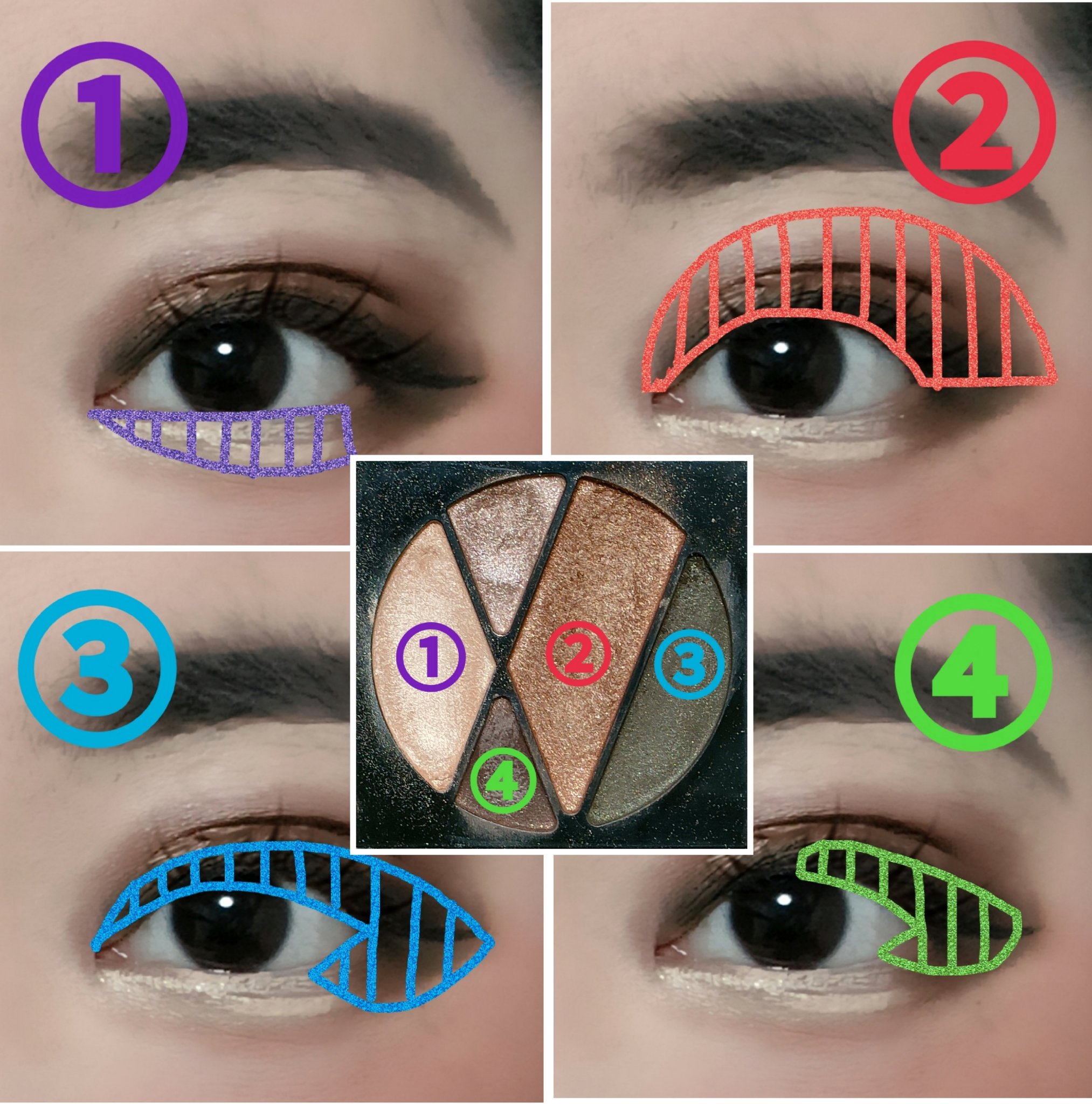 アイシャドウパレットは、URGLAM UR GLAMBLOOMING EYE COLOR PALETTE 02を、使用しました。 マスカラは、MAYBELLINE NEW YORK コロッサルボリュームエクスプレスを、まつ毛全体にまんべんなく塗ります。 リップは、wet 'n' wild MegaLast Lip Colorを、唇全体にまんべんなく塗ります。