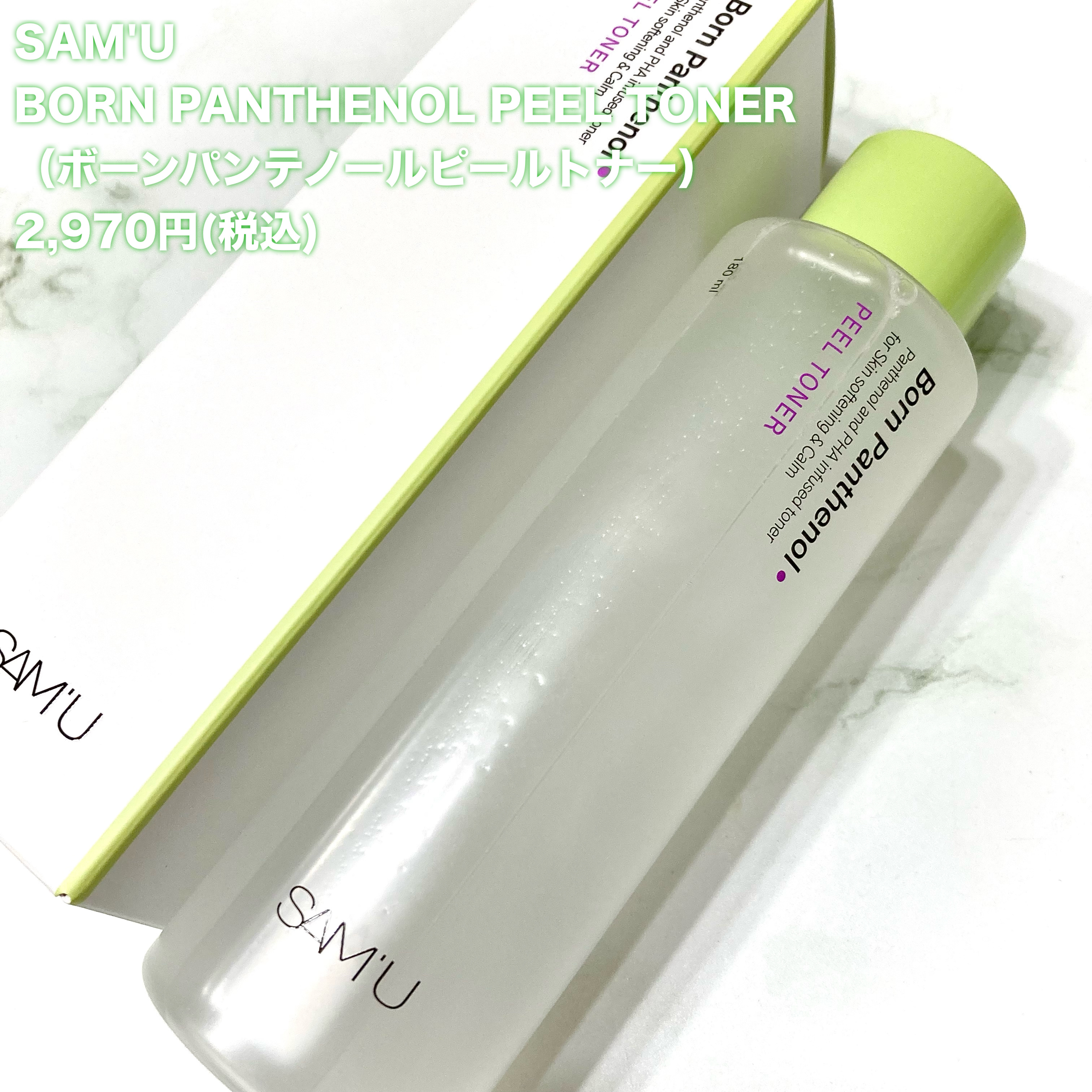 SAM'UBORNPANTHENOLPEELTONER☑︎角質ケア成分PHA配合でマイルドな使用感で優しく角質を除去またSAM'Uこだわりの純度98%以上D-パンテノール配合肌キメを整えてうるおいで満たしてくれるシャバシャバな水テクスチャで何...