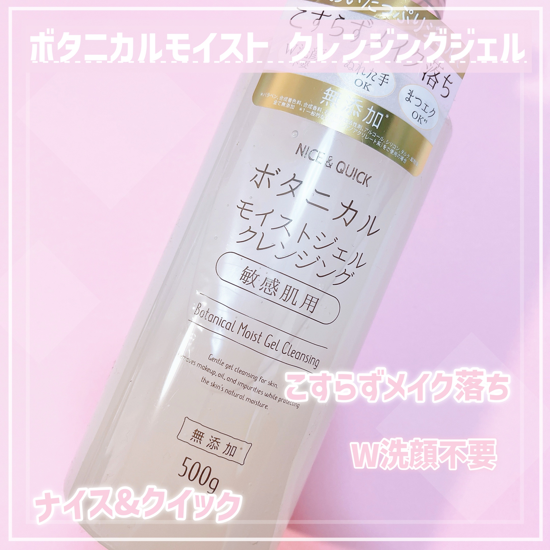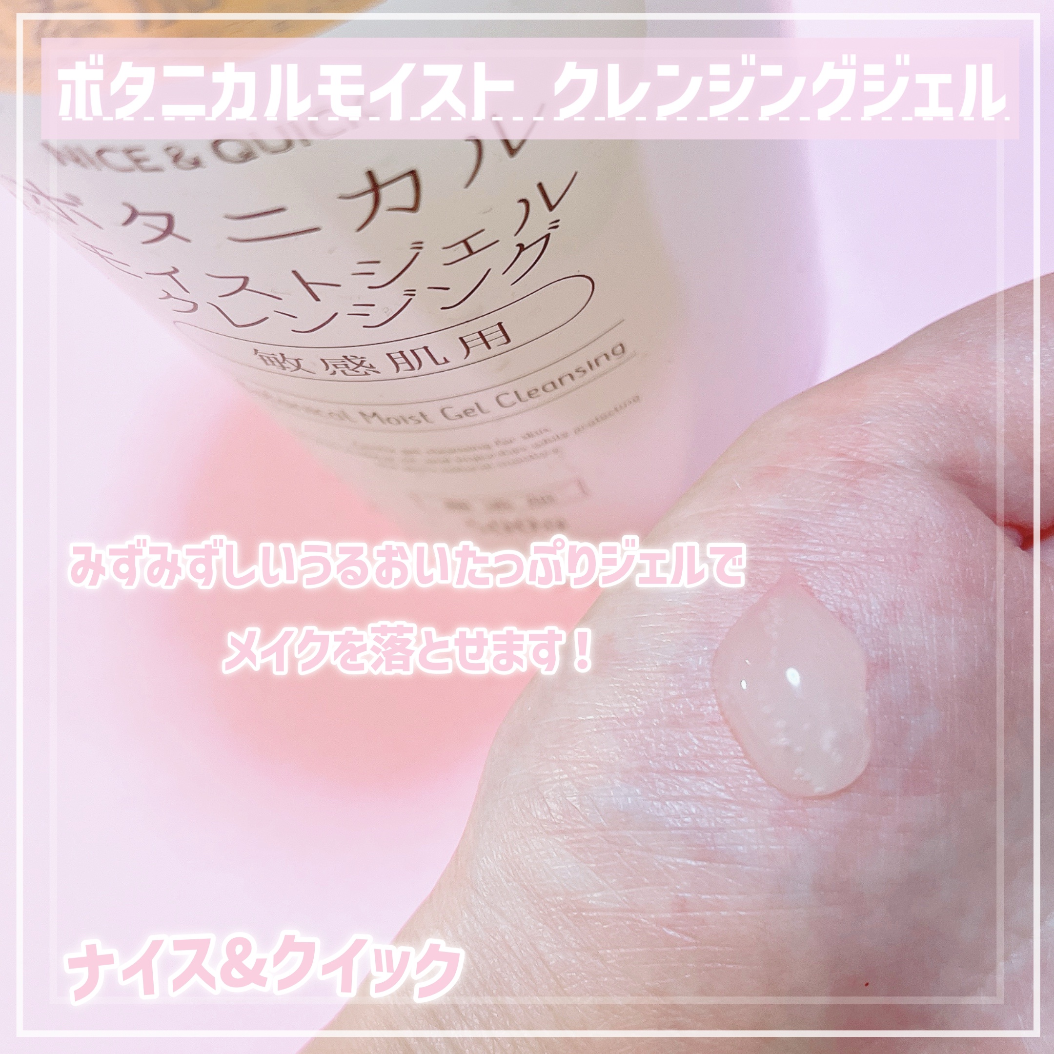 NICE&QUICK(ナイスアンドクイック)ボタニカルモイストジェルクレンジング使ってみました!NICE&QUICK(ナイスアンドクイック)ボタニカルモイストジェルクレンジングは、うるおいたっぷりジェルでこすらずやさしくメイク落としです。初め...