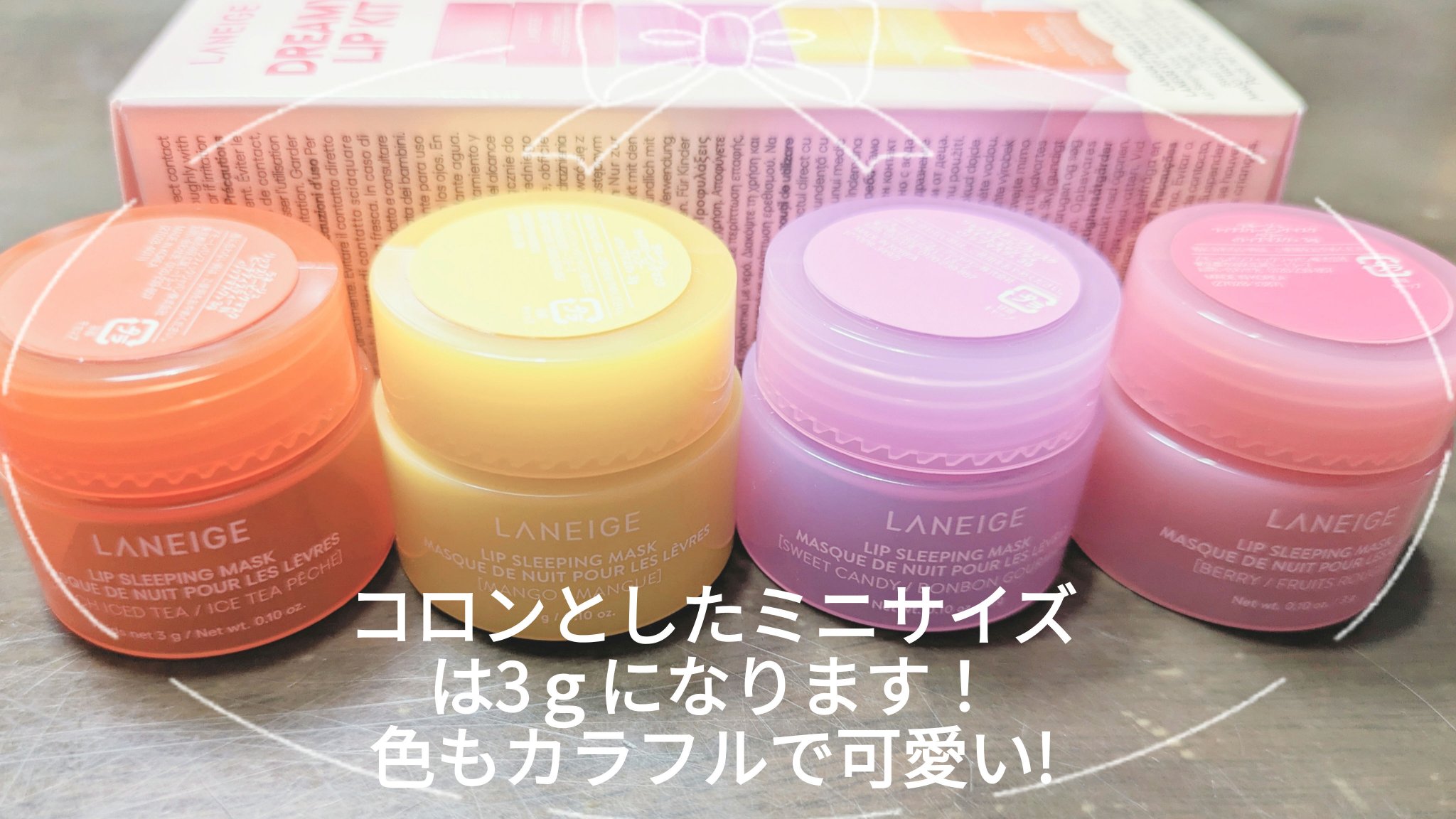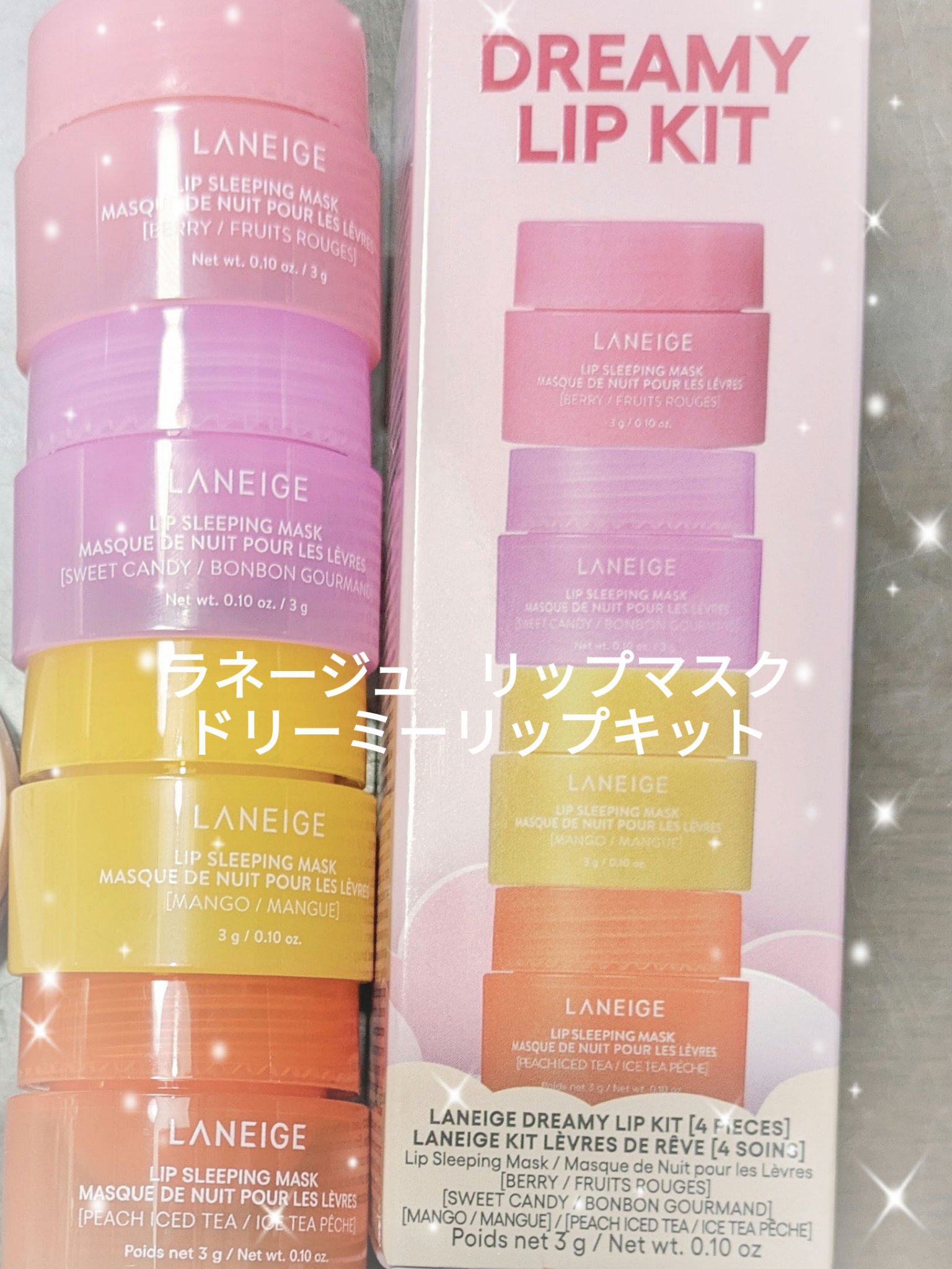 LANEIGE リップマスクのフレーバー5種類が入ったミニサイズ(1個3g)のスペシャルキット✨ 内容は定番のベリー、グミベアに加え、限定のマンゴー、ウォーターメロン、ピーチアイスティーを含む計5種 毎晩どのフレーバーにしようか悩めるのが嬉しいです🌠