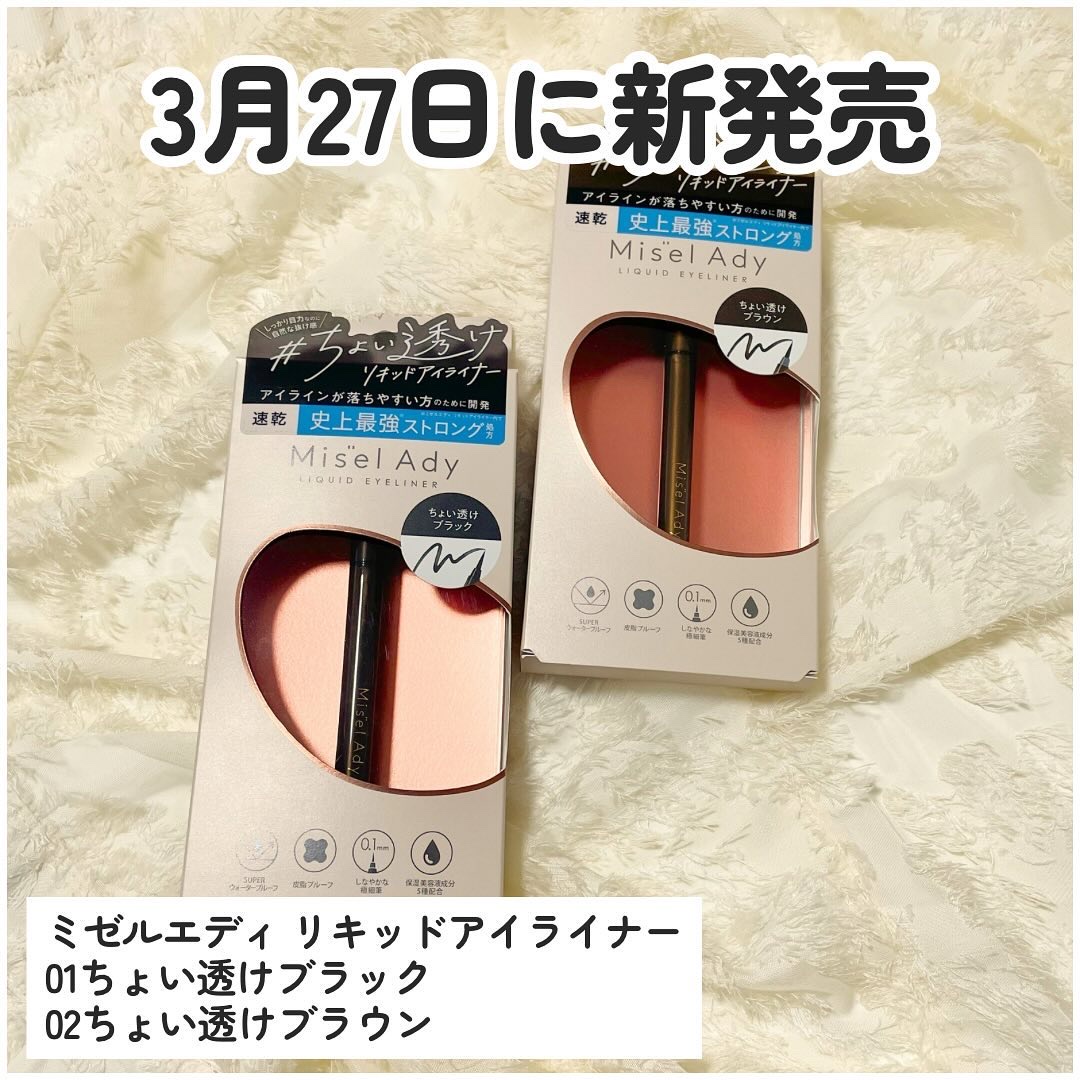 ♡ミゼルエディリキッドアイライナー01ちょい透けブラック02ちょい透けブラウン@_squseme_自然な抜け感が叶う、絶妙な「ちょい透け」発色のリキッドアイライナー🕊️🤍先端0.1mmの極細筆で、水・汗・皮脂・こすれにも負けないストロング処方...