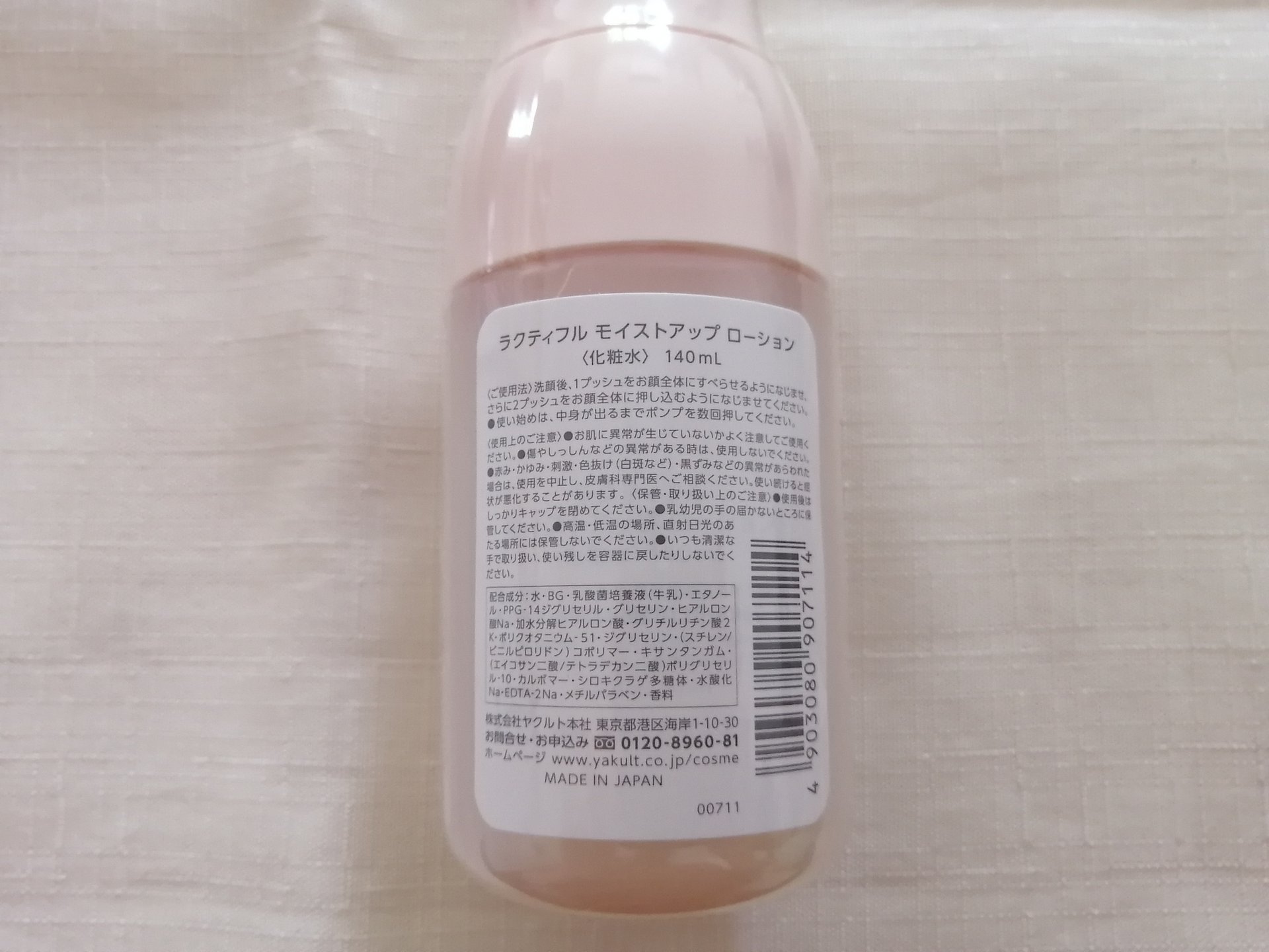 - モイストアップ ローション とろりとしたテクスチャーで、肌になじませた瞬間にみずみずしいうるおいが広がる化粧水。 乳酸菌*1の「うるおい安定力」*2で、肌を水分リッチにたもち、もっちりつやめく満たされ肌へ。 その秘密は、ヤクルトが独自に開発した2つの乳酸菌保湿成分による、角質層内と肌表面へのアプローチ。 角質層に、肌本来のうるおい成分*4に似た乳酸菌発酵エキス*5が、すばやく浸透*3し、角質層の水分保持をサポート。 肌表面に、貯水力の高い乳酸菌発酵ヒアルロン酸*6 が、肌表面を濃密なうるおい保水膜で包みこみ、肌をパックします。 まるで乳酸菌が醸すようなさわやかな香りがほのかに広がります。 【LACTIFUL】 かつて、「ヤクルト」を瓶で販売していた時代、その瓶を洗う人の手がいつもうるおっていたということが肌にいい乳酸菌の研究を後押ししました。その後、70 年以上に渡り研究を重ねて生まれた「ラクティフル」は、肌のすこやかさを乳酸菌のチカラで保ち、年を重ねるのが楽しみになる未来をめざしています。 また、食品メーカーならではの厳しい品質管理基準にこだわっています。 *1 乳酸菌由来の保湿成分配合 *2 肌にうるおいを与えたもつ力のこと *3 角質層まで *4 天然保湿因子 *5 乳酸菌培養液(牛乳)[保湿成分] *6 ヒアルロン酸Na、加水分解ヒアルロン酸[保湿成分]