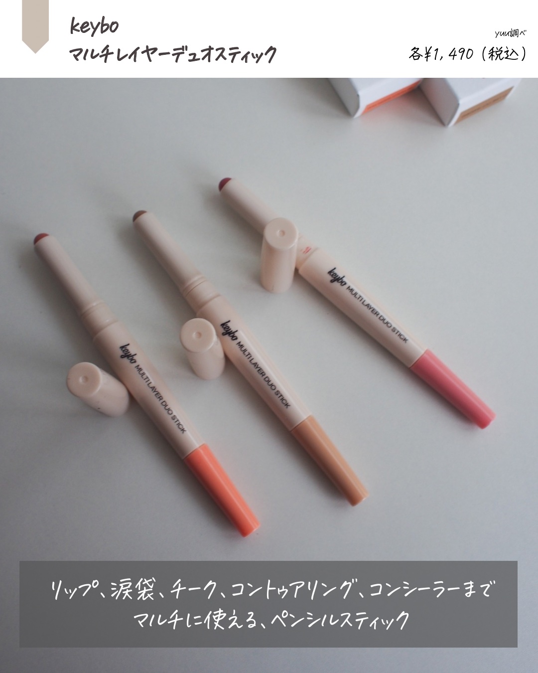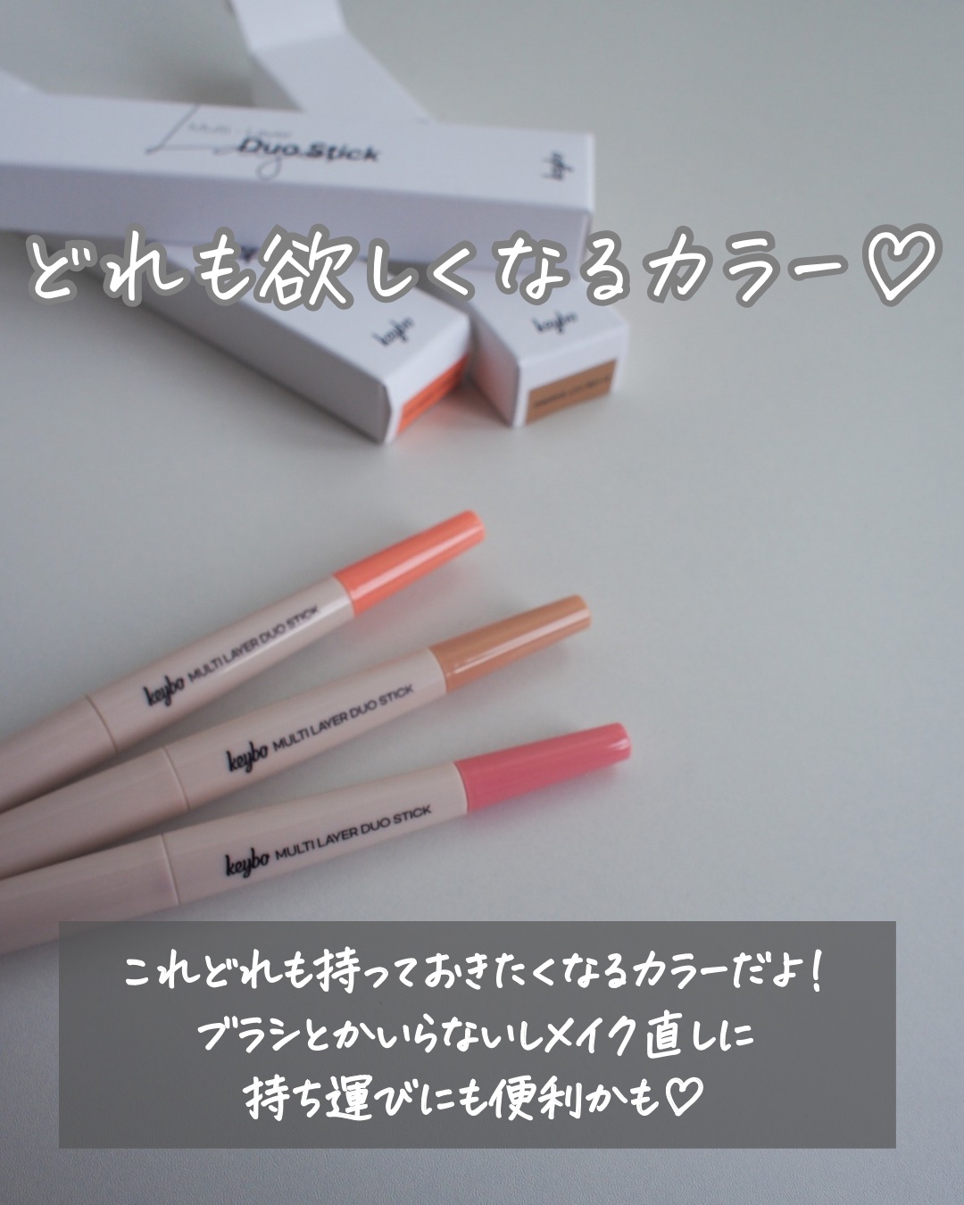 シェーディング・ハイライト・涙袋・コンシーラー・チーク・リップと立体的な表情を演出してくれるマルチスティック💗@keybo_cosmetic@keybo_jpkeybo(キボ)マルチレイヤーデュオスティック【全3色】各1,490円Qoo10k...
