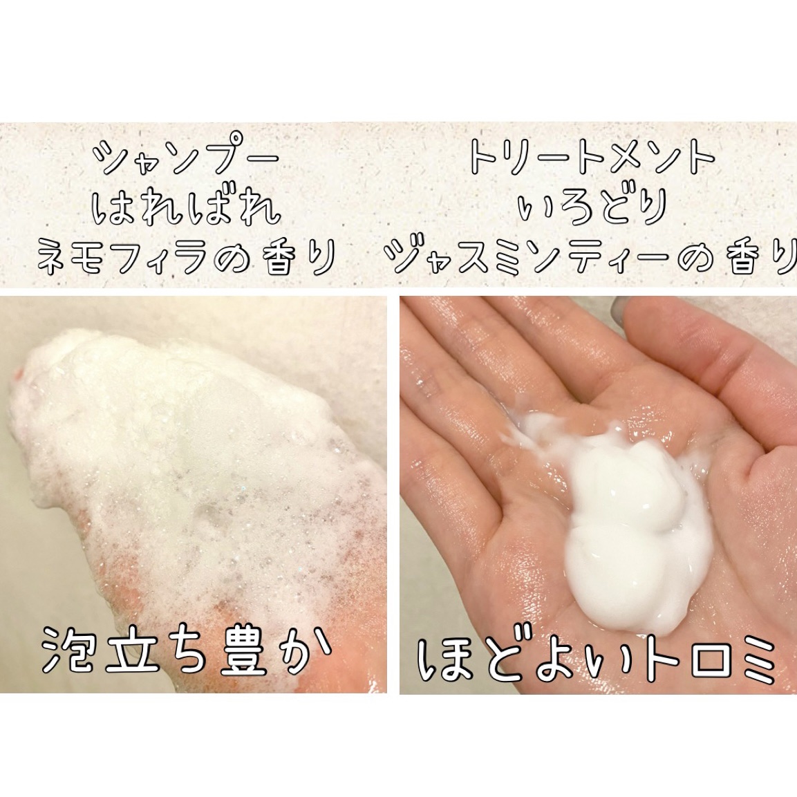 | 泡立ちも素早くふわふわな軽い泡で頭を洗えます🫧トリートメントはこっくりとなめらかで毛先まで塗布しやすい! | 詳細を見る |