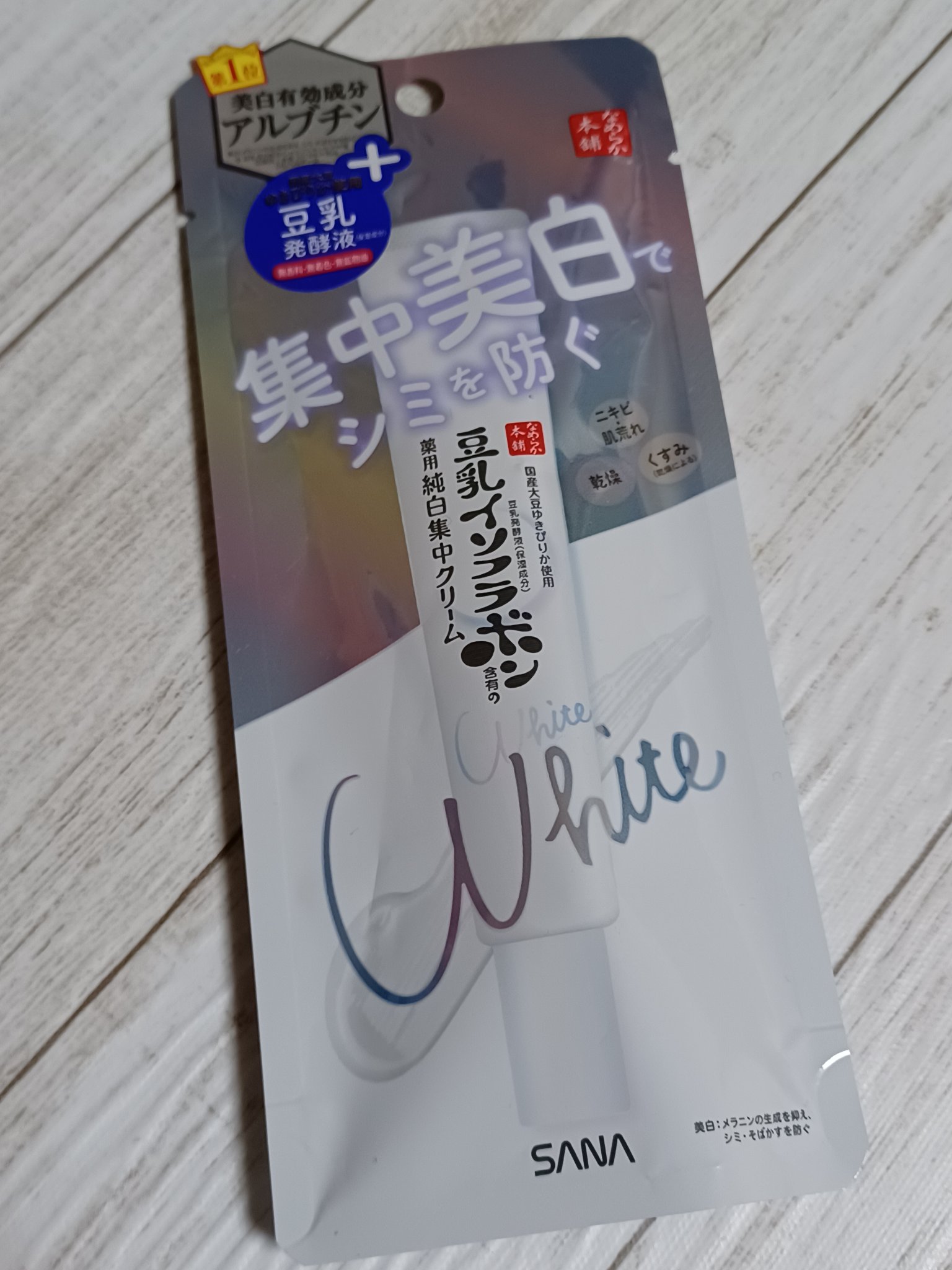 - <19g> 水、BG、フェノキシエタノール、エタノール、グリチルレチン酸ステアリル、アルブチン、ビタミンE、メチルポリシロキサン、豆乳発酵液、ダイズエキス、塩化ナトリウム、2-エチルヘキサン酸セチル、テトラ2-エチルヘキサン酸ペンタエリトリット、dl-α-トコフェリルリン酸ナトリウム、架橋型ポリエーテル変性シリコーン混合物、PEG-9 ポリジメチルシロキシエチル ジメチコン、dl-α-トコフェロール 2-L-アスコルビン酸リン酸ジエステルカリウム塩