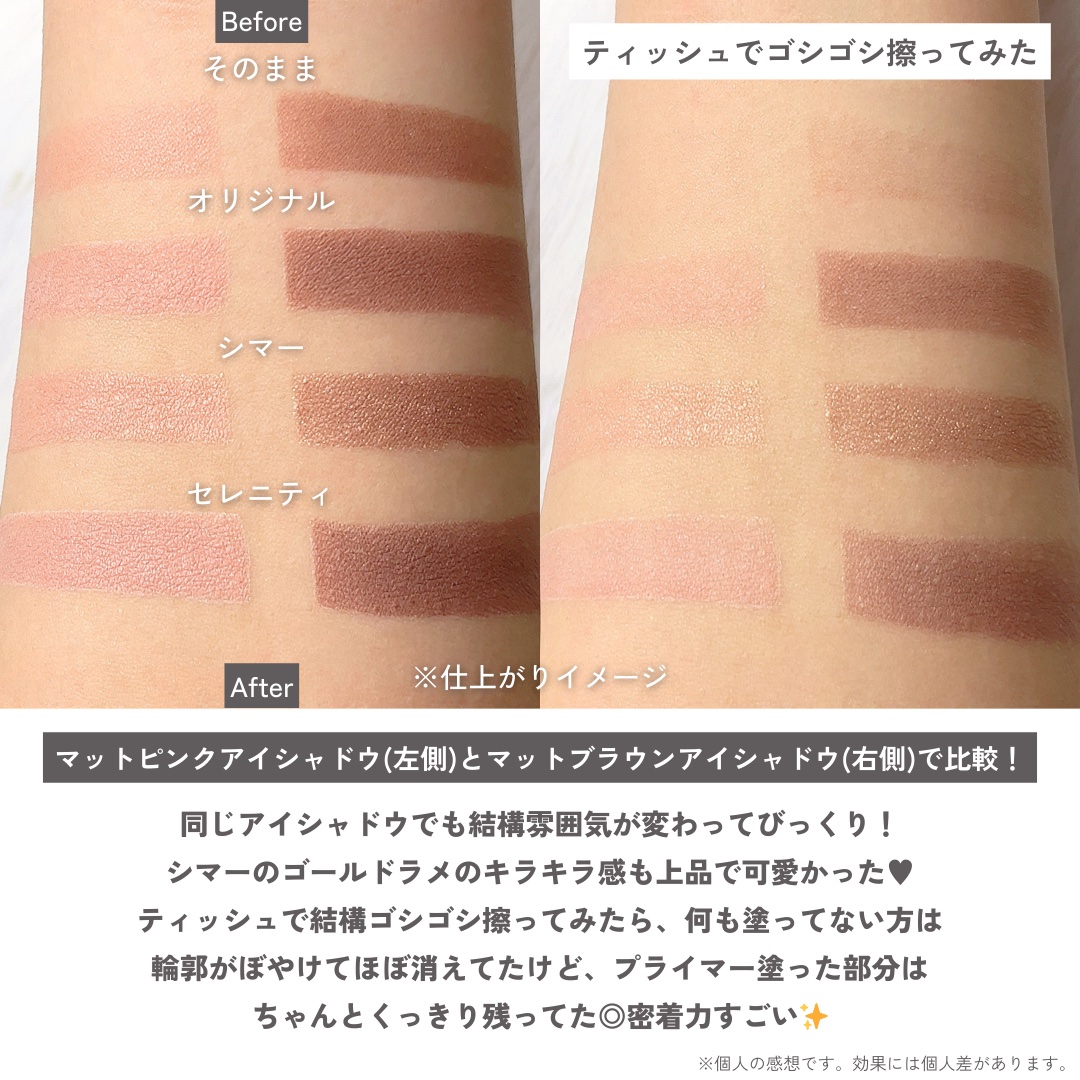 - アイメイクを持続させるテカリのないキリッとしたアイメイク アイシャドウを鮮やかに発色させ、きれいなアイメイクを長時間*キープするアイプライマー。 *皮脂抑制データ韓国外部機関にて取得済み。効果には個人差があります。