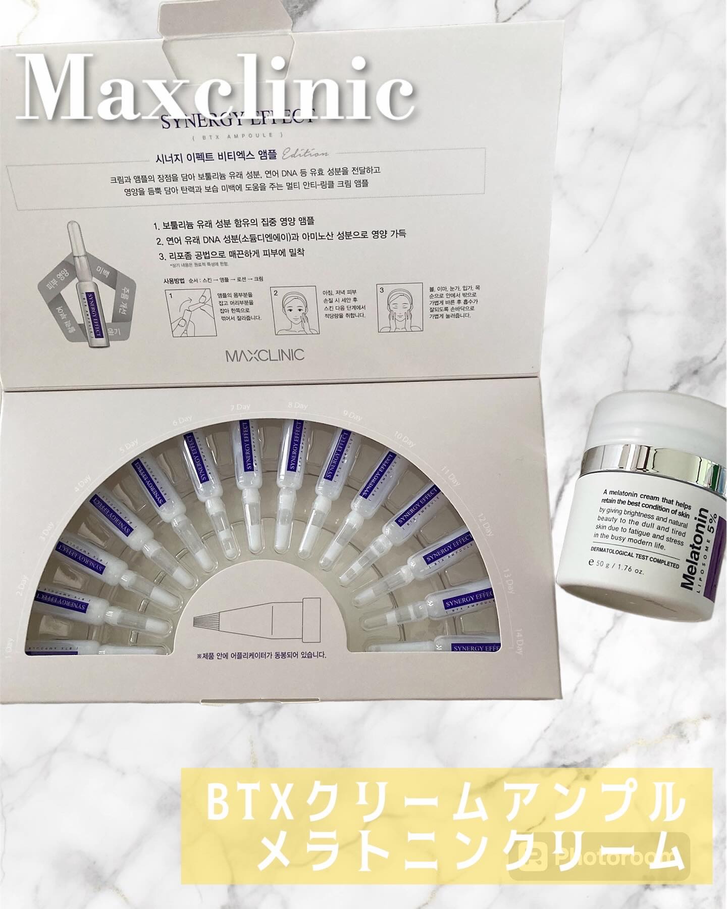 マックスクリニックBTXアンプル\クリームとアンプルのメリットを同時にゲット!/【製品】✔️「シンデレラ肌専門機関」とマックスクリニックがSYNERGYEFF共同開発→クリームの保湿力とアンプルのソフトな使用感を1本に盛り込みました✔️サーモ...