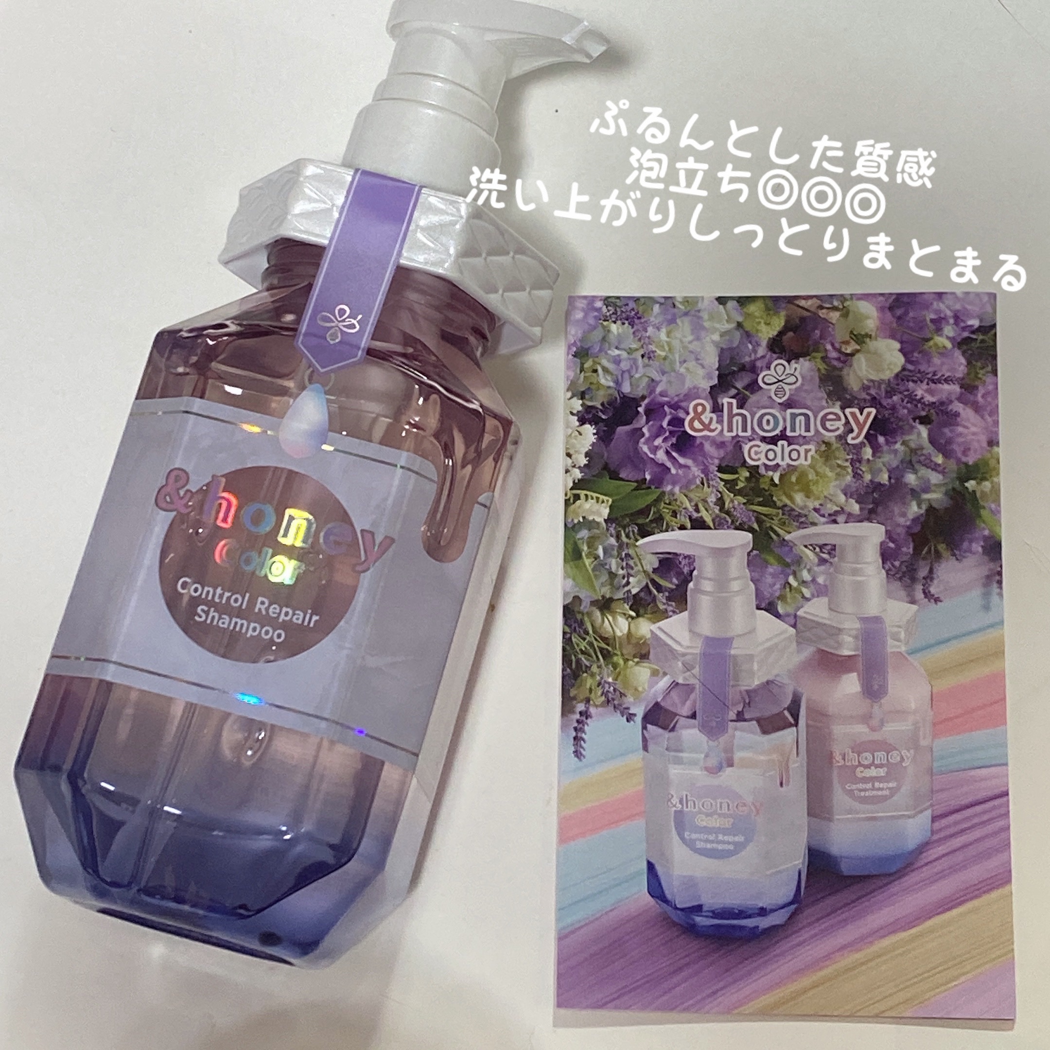 - 鮮やかな髪色をキープしながら、サラツヤの仕上がりへ導くハチミツ美容のカラーケアシャンプー。 製品の90%以上をハチミツ*1やレブリン酸*2などの保湿&保護+カラーケア成分で構成しました。※1 さらにハチミツ美容とカラーケア成分*2*3*4の融合により、鮮やかな髪色をキープしながらキューティクルケアを叶えます。 &honey独自のカラーコントロール処方で、カラーキープ率130%の髪へ※2。 ケラチン由来の洗浄成分*5の配合により、染めたての髪色をキープしながらツヤめく洗い上がりです。 無添加フリー処方です。※3。 フランス産スズランエキス*6を使用した、ミュゲハニーの香りです。 サラツヤタイプ ※1 基剤を除く、水を含む ※2 当社既存品比(&honeyシリーズ比)、髪質などにより個人差があります ※3 サルフェート、パラベン、PG、鉱物油、動物実験 *1 保湿 *2 レブリン酸(pH調整剤・補修) *3 加水分解ハチミツタンパク(保護) *4 ケラチン(羊毛)(補修・化学修飾していない) *5 ココイル加水分解ケラチンK(羊毛) *6 スズランエキス(香気・保湿)