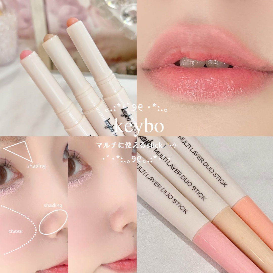 keyboマルチレイヤーデュオスティック🫶早速一軍コスメの仲間入り🥰カラーは全3色🩷01Linecutshading02Peachwarmduo03Rosecoolduoこれ1本でオーバーリップ、ハイライト、チーク、シェーディング、コンシーラ...
