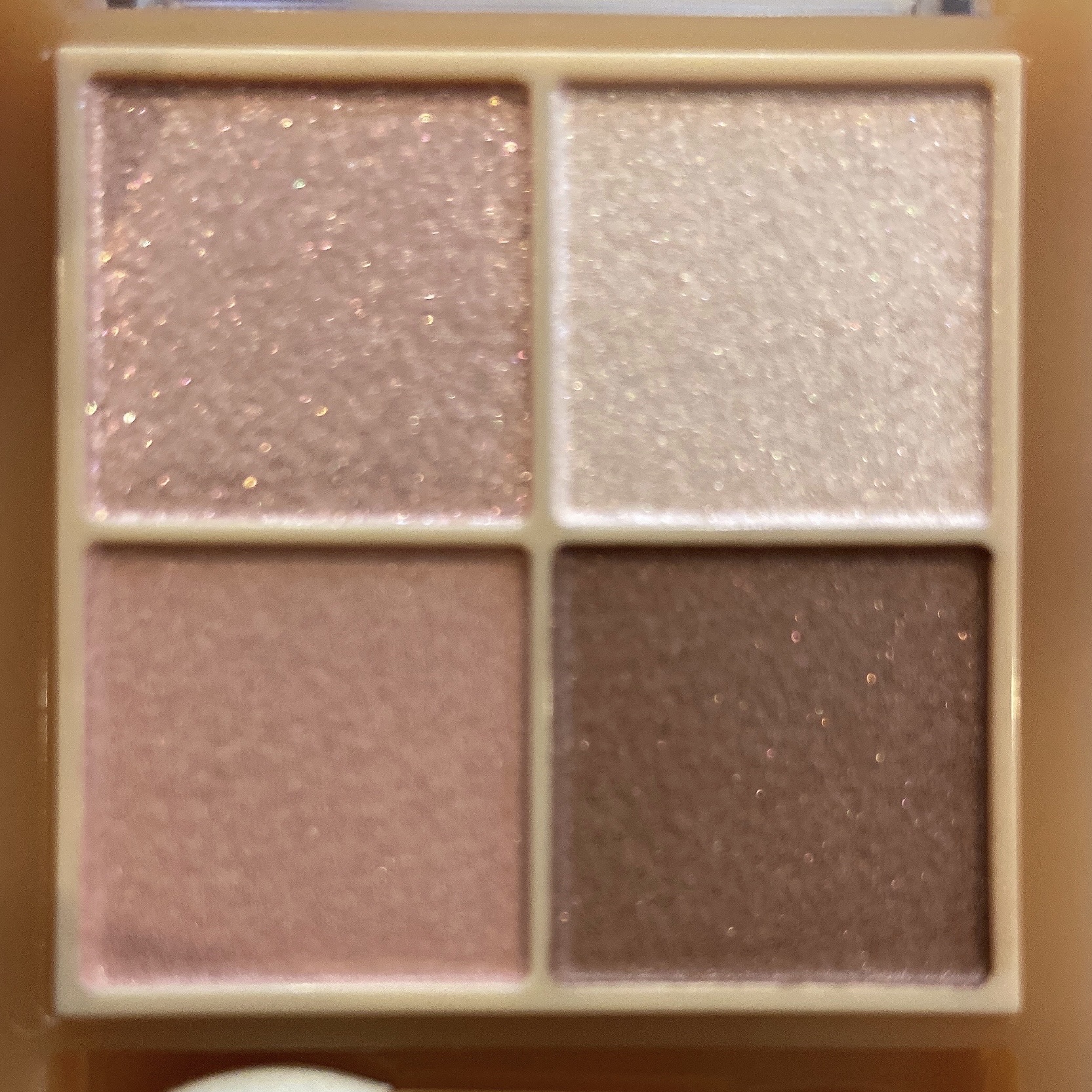 - ラメ・パール・マット3質感の4色アイシャドウ。 肌馴染みの良いベージュを基調としたカラー。ラメ・パール・マットの3質感を重ねて、自然にまぶたを強調し奥行のある大きな目元へ。 しっとり溶け込むような柔らかなパウダーなので、スルスル伸びてまぶたにピタッと密着。保湿成分(スクワラン・ホホバ種子油)配合。