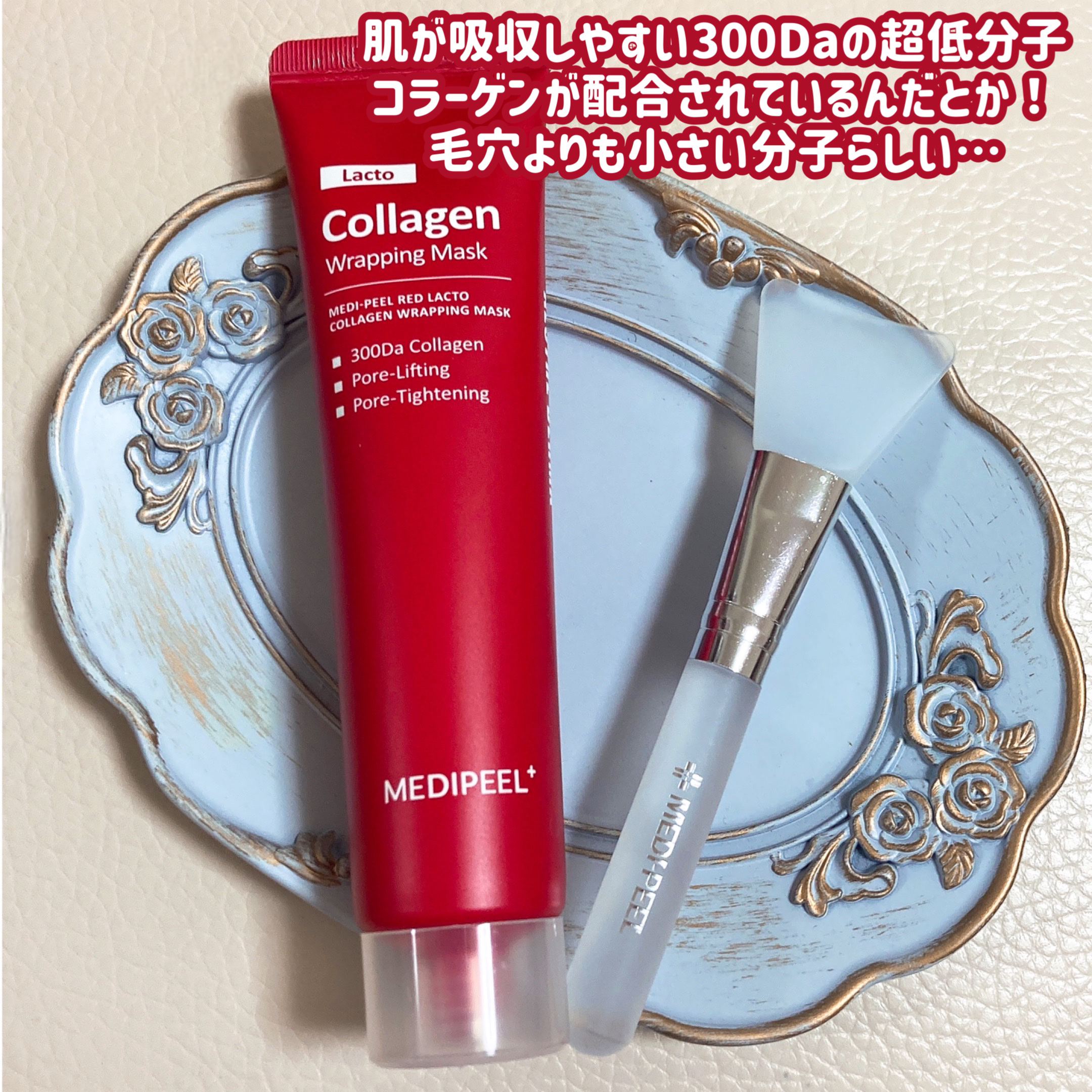 MEDIPEELレッドラクトコラーゲンラッピングマスク🐼塗るコラーゲンってめちゃめちゃ惹きあるワードよねw毛穴より小さい超低分子コラーゲンを70.2%配合🧪今流行りの塗ったら顔に密着してオーダーメイドのマスクになってくれやつ✨これ塗りやすかっ...