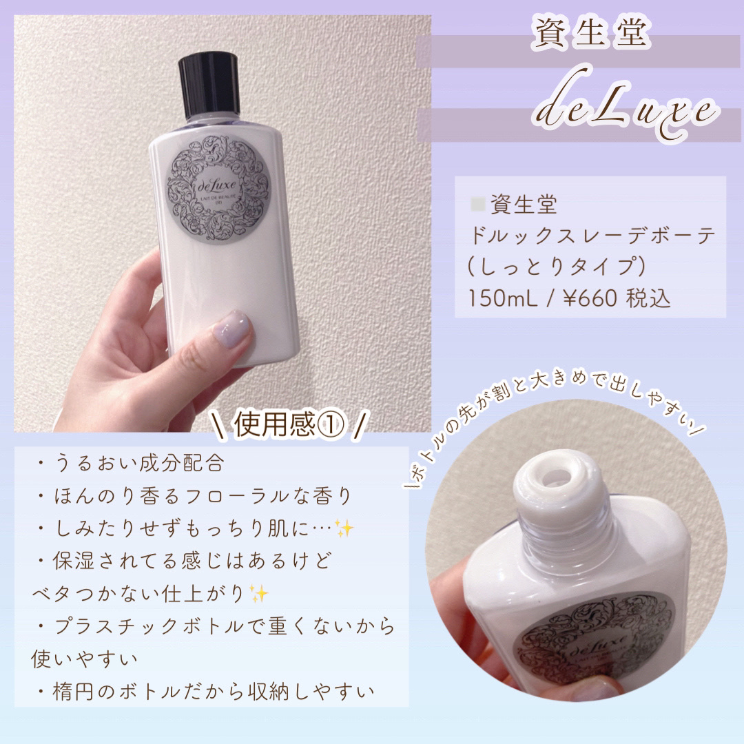 | さっぱりというよりしっとりに近いテクスチャー。 べたつかないので塗りやすい。 | 詳細を見る |