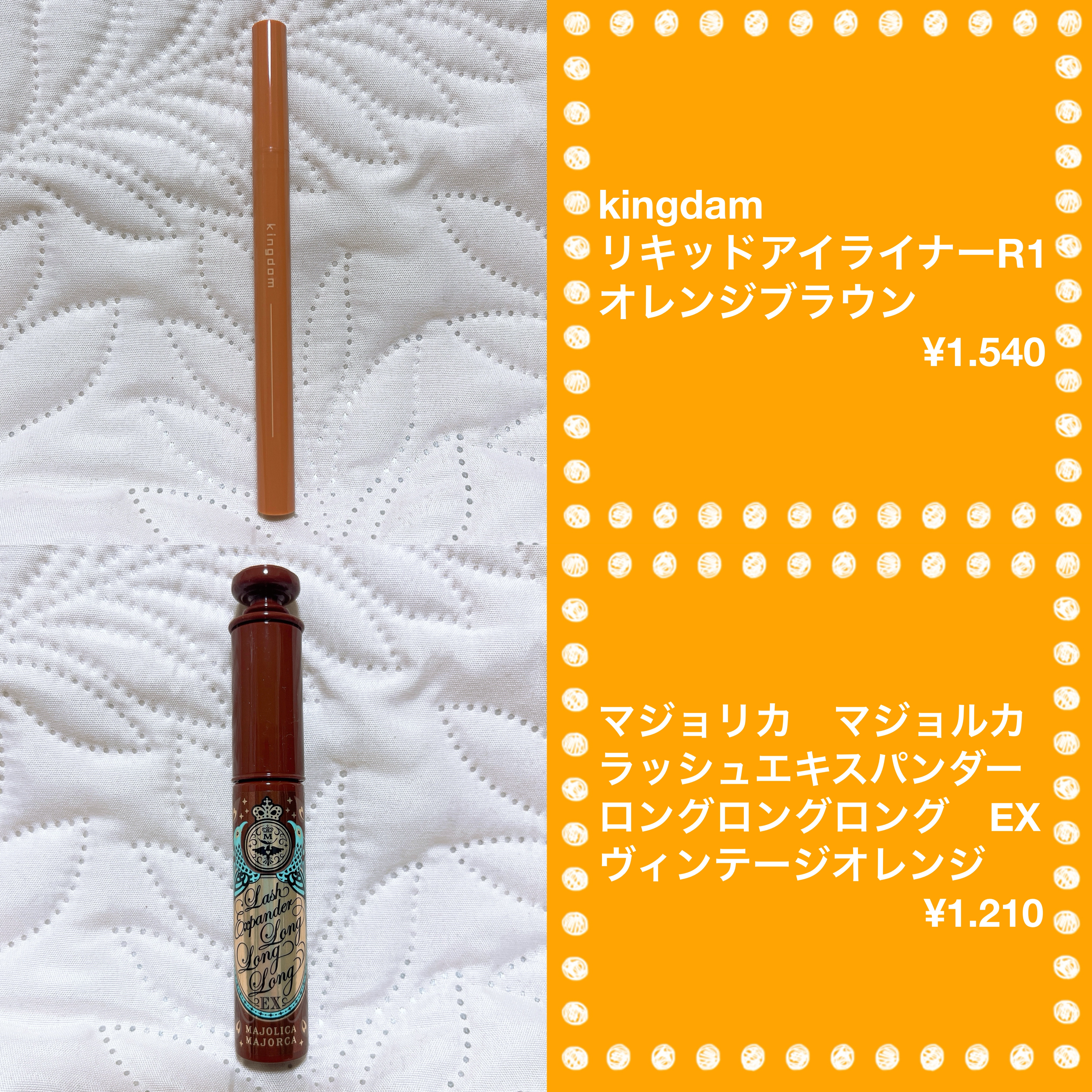 リアルで盛れてない時はsnowでも 盛れません。笑 アイシャドウはhemeのゴールデンマンゴー🥭 眉毛はお馴染みKATE✨ マスカラは初めて買ったマジョリカマジョルカ! リップがマジで良い。落ちにくいし キャメルオレンジ可愛すぎた🧡 カラコンはMOLAKのダズルベージュ🤎