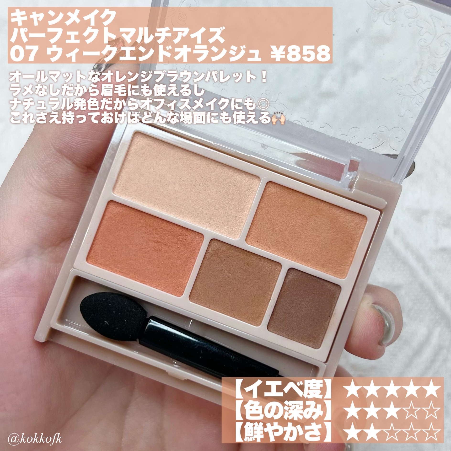 M03 ミルキーチェリコッタはイエベさんの秋メイクに使いやすいコーラルブラウン系のパレット。 発色が絶妙で¥1,078円なのは相変わらずすごい…!の一言です。 キャンメイク プティパレットアイズの新色🎨10月下旬から定番化予定だそう。